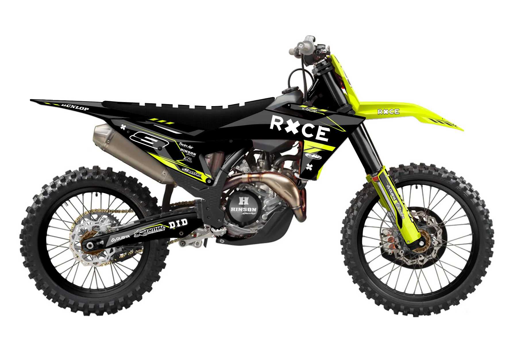 «Kitted Neon» — готовый комплект графики серии Maverick для KTM MX Graphic Kit KTM SX-F 450 2022. В комплекте: графика на бак и боковые облицовки, крылья (переднее и заднее), передний щиток, номерные таблички, защита вилки. Материал: ПВХ-винил 80 мкр с холодной ламинацией 300 мкр, общая толщина 380 мкр; покрытие глянцевое или матовое на выбор. Устойчив к UV-излучению, воде, бензину и мойке высокого давления. Клей акриловый на сольвентной основе — постоянный, для гибких пластиков. На простых поверхностях монтируется без нагрева; для сложных изгибов рекомендуем фен. Этот пресет можно заказать как есть или взять за основу в конструкторе: поменять цвета, добавить стартовый номер и свой бренд. Производство — 3–5 рабочих дней, доставка по России СДЭКом или Почтой, по СНГ — курьерскими службами.