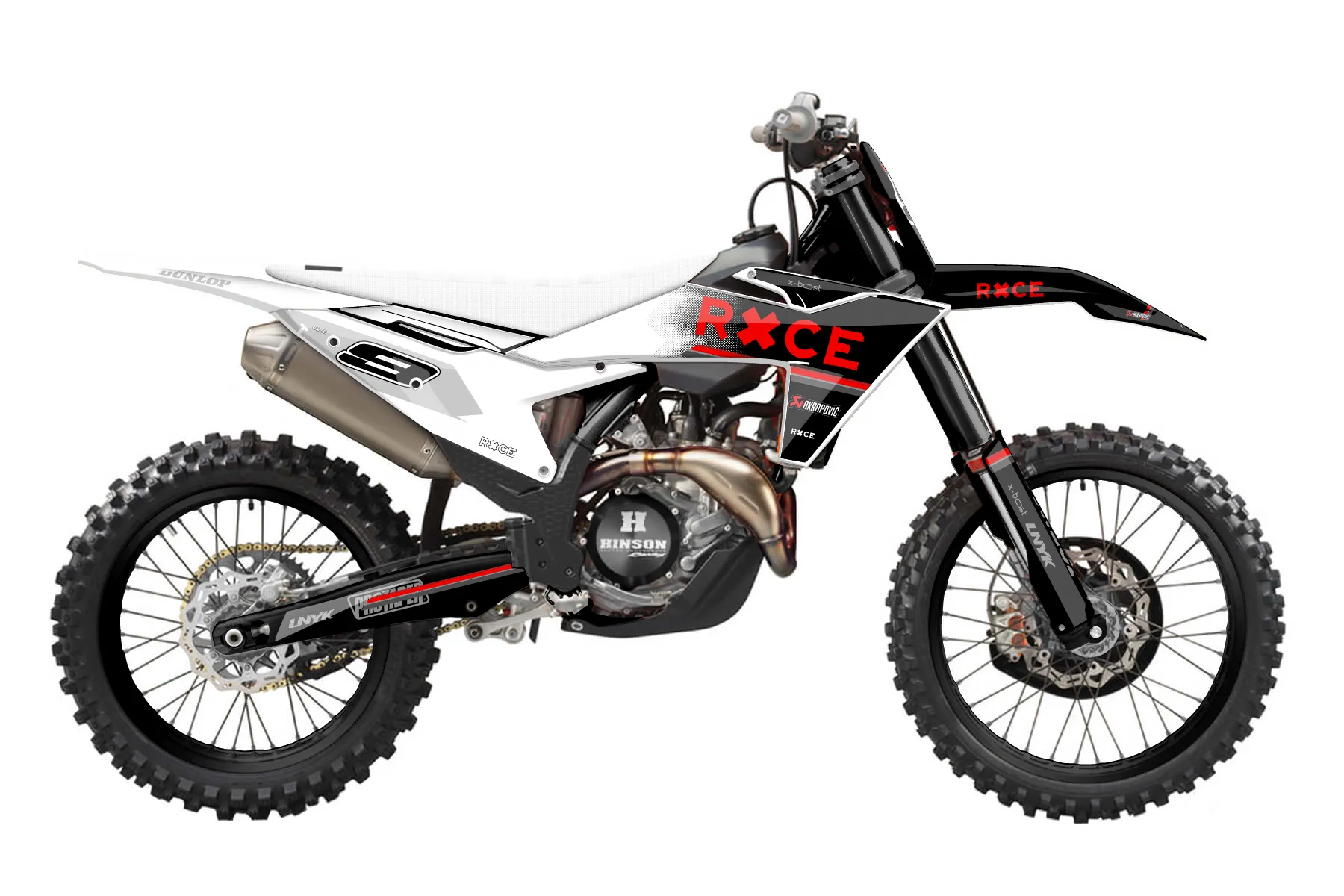 «Rise» — готовый комплект графики серии Maverick для KTM MX Graphic Kit KTM SX-F 450 2022. В комплекте: графика на бак и боковые облицовки, крылья (переднее и заднее), передний щиток, номерные таблички, защита вилки. Материал: ПВХ-винил 80 мкр с холодной ламинацией 300 мкр, общая толщина 380 мкр; покрытие глянцевое или матовое на выбор. Устойчив к UV-излучению, воде, бензину и мойке высокого давления. Клей акриловый на сольвентной основе — постоянный, для гибких пластиков. На простых поверхностях монтируется без нагрева; для сложных изгибов рекомендуем фен. Этот пресет можно заказать как есть или взять за основу в конструкторе: поменять цвета, добавить стартовый номер и свой бренд. Производство — 3–5 рабочих дней, доставка по России СДЭКом или Почтой, по СНГ — курьерскими службами.