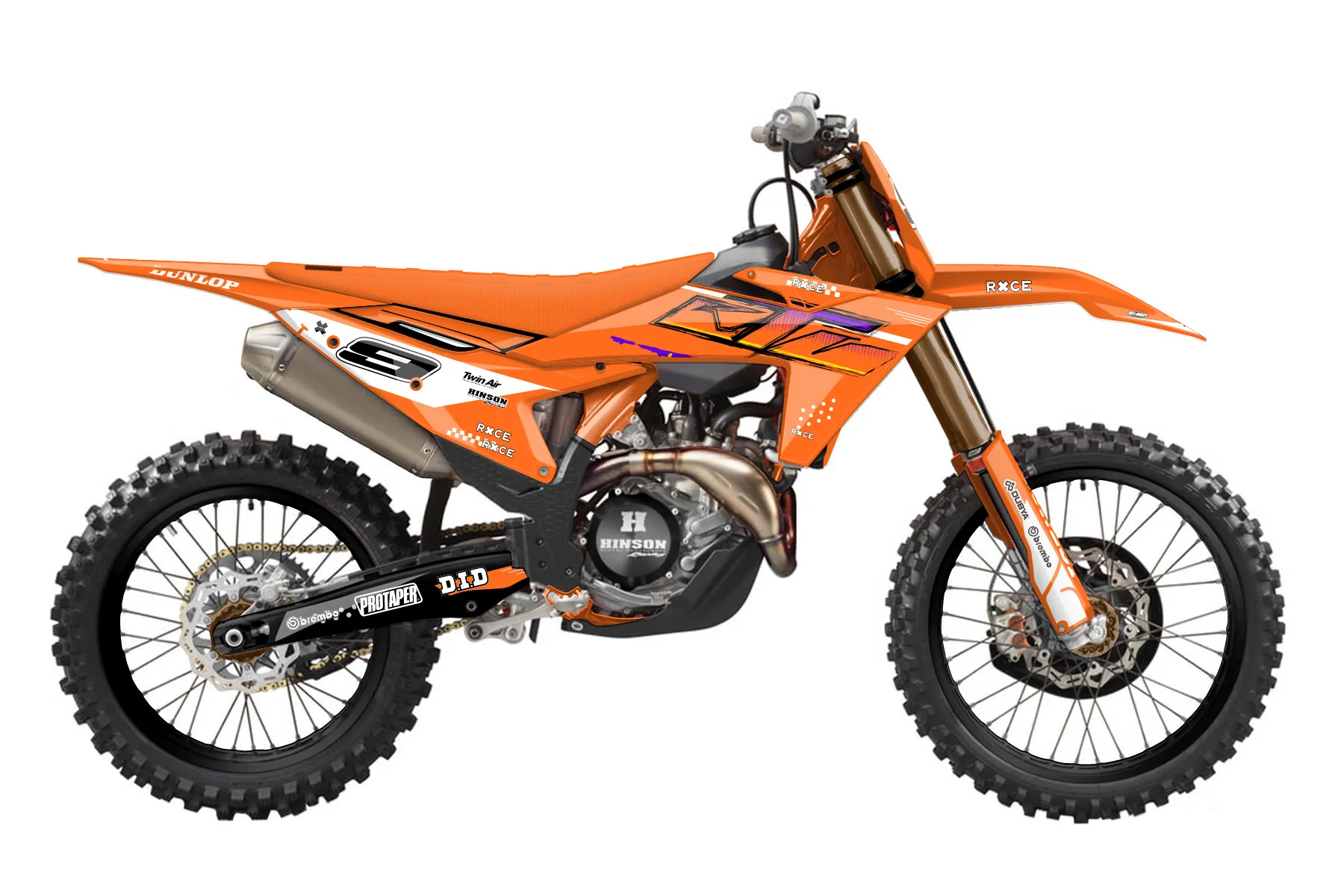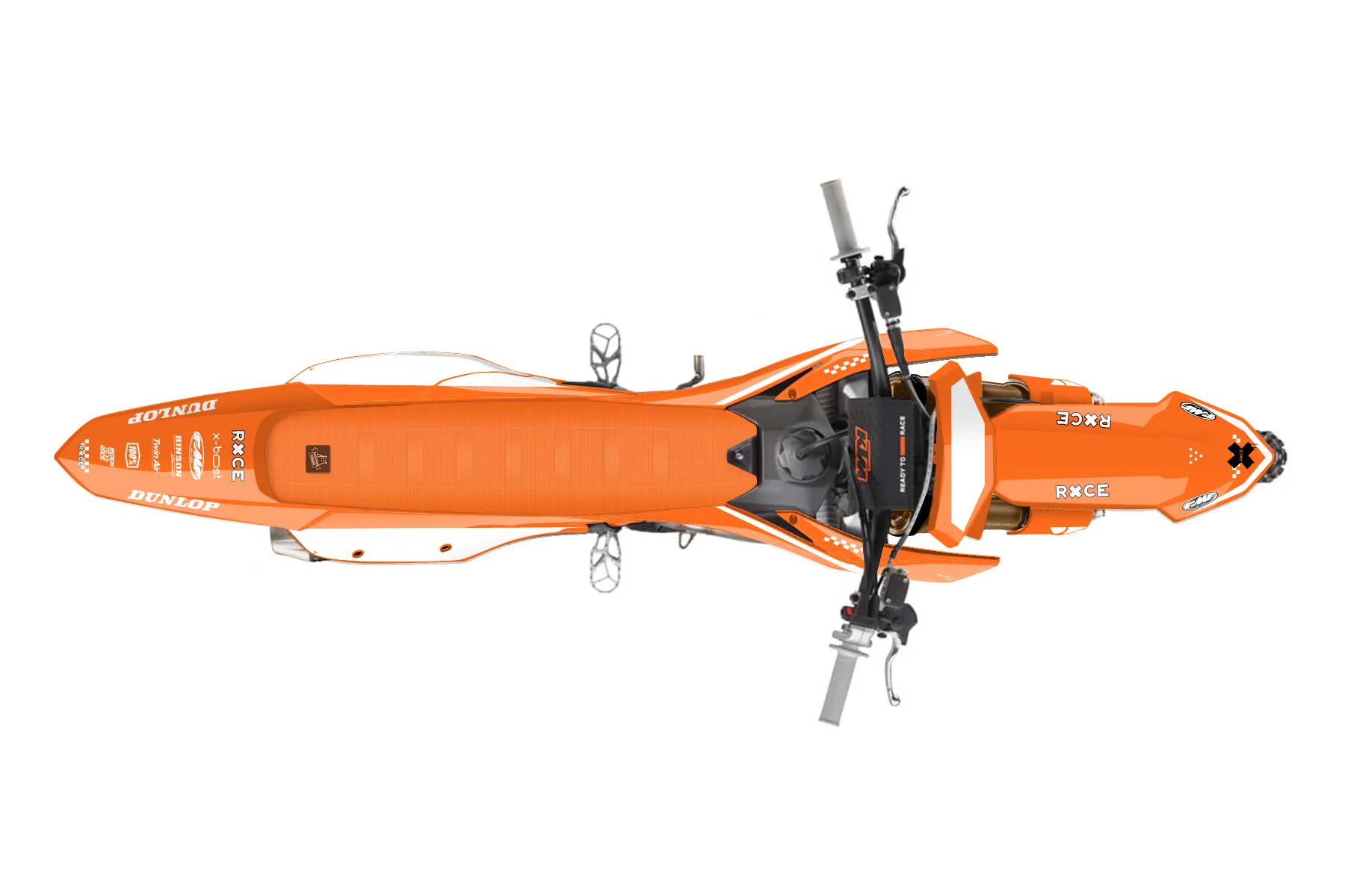 «ktm2» — готовый комплект графики серии Staple для KTM MX Graphic Kit KTM SX-F 450 2022. В комплекте: графика на бак и боковые облицовки, крылья (переднее и заднее), передний щиток, номерные таблички, защита вилки. Материал: ПВХ-винил 80 мкр с холодной ламинацией 300 мкр, общая толщина 380 мкр; покрытие глянцевое или матовое на выбор. Устойчив к UV-излучению, воде, бензину и мойке высокого давления. Клей акриловый на сольвентной основе — постоянный, для гибких пластиков. На простых поверхностях монтируется без нагрева; для сложных изгибов рекомендуем фен. Этот пресет можно заказать как есть или взять за основу в конструкторе: поменять цвета, добавить стартовый номер и свой бренд. Производство — 3–5 рабочих дней, доставка по России СДЭКом или Почтой, по СНГ — курьерскими службами.