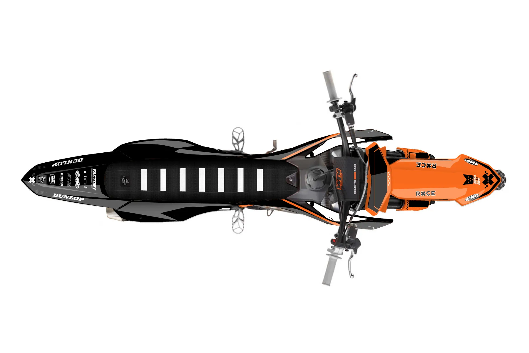 «RacerX» — готовый комплект графики серии Staple для KTM MX Graphic Kit KTM SX-F 450 2022. В комплекте: графика на бак и боковые облицовки, крылья (переднее и заднее), передний щиток, номерные таблички, защита вилки. Материал: ПВХ-винил 80 мкр с холодной ламинацией 300 мкр, общая толщина 380 мкр; покрытие глянцевое или матовое на выбор. Устойчив к UV-излучению, воде, бензину и мойке высокого давления. Клей акриловый на сольвентной основе — постоянный, для гибких пластиков. На простых поверхностях монтируется без нагрева; для сложных изгибов рекомендуем фен. Этот пресет можно заказать как есть или взять за основу в конструкторе: поменять цвета, добавить стартовый номер и свой бренд. Производство — 3–5 рабочих дней, доставка по России СДЭКом или Почтой, по СНГ — курьерскими службами.