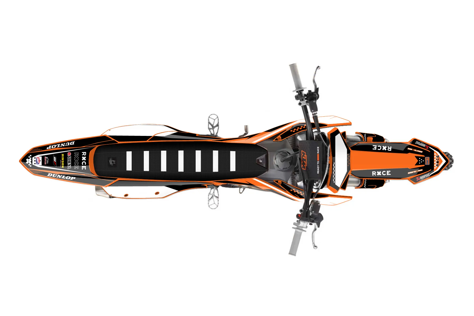 «Raw» — готовый комплект графики серии Staple для KTM MX Graphic Kit KTM SX-F 450 2022. В комплекте: графика на бак и боковые облицовки, крылья (переднее и заднее), передний щиток, номерные таблички, защита вилки. Материал: ПВХ-винил 80 мкр с холодной ламинацией 300 мкр, общая толщина 380 мкр; покрытие глянцевое или матовое на выбор. Устойчив к UV-излучению, воде, бензину и мойке высокого давления. Клей акриловый на сольвентной основе — постоянный, для гибких пластиков. На простых поверхностях монтируется без нагрева; для сложных изгибов рекомендуем фен. Этот пресет можно заказать как есть или взять за основу в конструкторе: поменять цвета, добавить стартовый номер и свой бренд. Производство — 3–5 рабочих дней, доставка по России СДЭКом или Почтой, по СНГ — курьерскими службами.