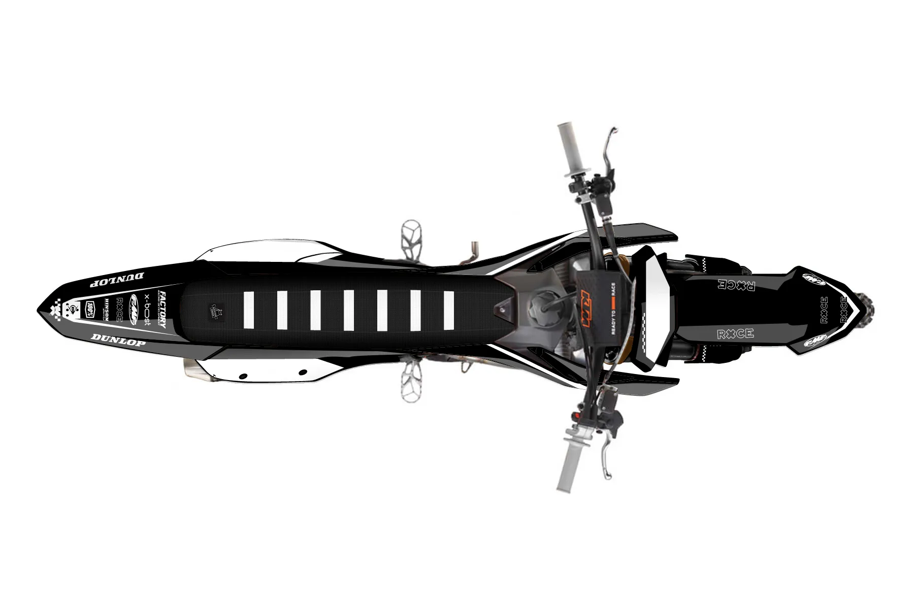 «Ryder» — готовый комплект графики серии Staple для KTM MX Graphic Kit KTM SX-F 450 2022. В комплекте: графика на бак и боковые облицовки, крылья (переднее и заднее), передний щиток, номерные таблички, защита вилки. Материал: ПВХ-винил 80 мкр с холодной ламинацией 300 мкр, общая толщина 380 мкр; покрытие глянцевое или матовое на выбор. Устойчив к UV-излучению, воде, бензину и мойке высокого давления. Клей акриловый на сольвентной основе — постоянный, для гибких пластиков. На простых поверхностях монтируется без нагрева; для сложных изгибов рекомендуем фен. Этот пресет можно заказать как есть или взять за основу в конструкторе: поменять цвета, добавить стартовый номер и свой бренд. Производство — 3–5 рабочих дней, доставка по России СДЭКом или Почтой, по СНГ — курьерскими службами.