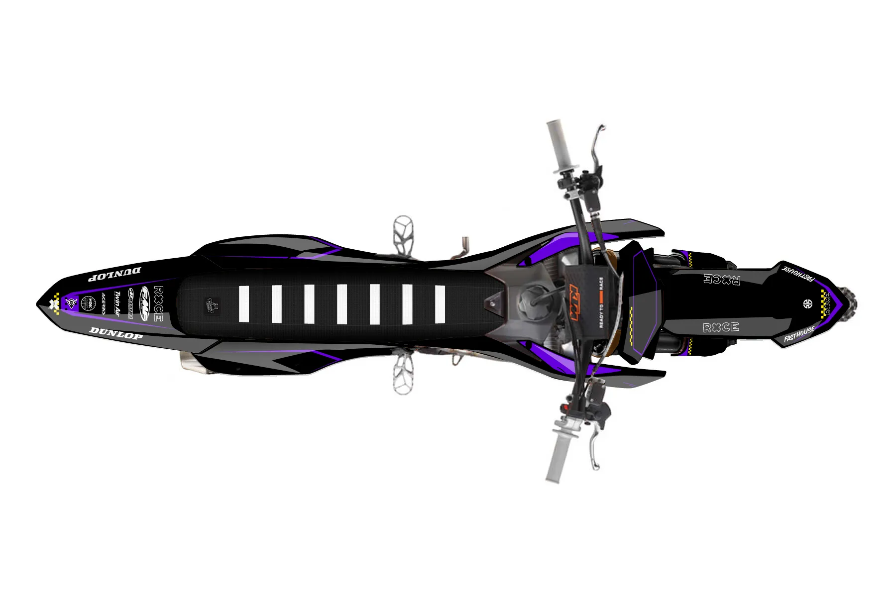 «Virtual» — готовый комплект графики серии Staple для KTM MX Graphic Kit KTM SX-F 450 2022. В комплекте: графика на бак и боковые облицовки, крылья (переднее и заднее), передний щиток, номерные таблички, защита вилки. Материал: ПВХ-винил 80 мкр с холодной ламинацией 300 мкр, общая толщина 380 мкр; покрытие глянцевое или матовое на выбор. Устойчив к UV-излучению, воде, бензину и мойке высокого давления. Клей акриловый на сольвентной основе — постоянный, для гибких пластиков. На простых поверхностях монтируется без нагрева; для сложных изгибов рекомендуем фен. Этот пресет можно заказать как есть или взять за основу в конструкторе: поменять цвета, добавить стартовый номер и свой бренд. Производство — 3–5 рабочих дней, доставка по России СДЭКом или Почтой, по СНГ — курьерскими службами.