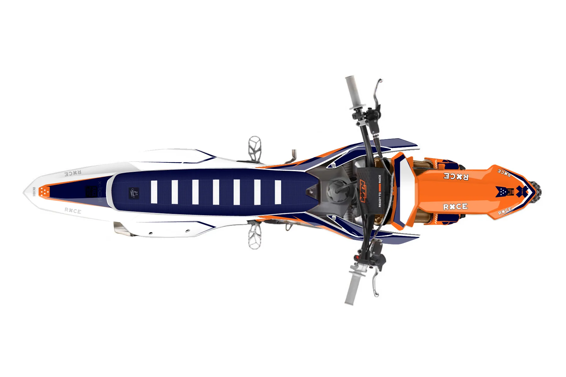 «Wrapper» — готовый комплект графики серии Staple для KTM MX Graphic Kit KTM SX-F 450 2022. В комплекте: графика на бак и боковые облицовки, крылья (переднее и заднее), передний щиток, номерные таблички, защита вилки. Материал: ПВХ-винил 80 мкр с холодной ламинацией 300 мкр, общая толщина 380 мкр; покрытие глянцевое или матовое на выбор. Устойчив к UV-излучению, воде, бензину и мойке высокого давления. Клей акриловый на сольвентной основе — постоянный, для гибких пластиков. На простых поверхностях монтируется без нагрева; для сложных изгибов рекомендуем фен. Этот пресет можно заказать как есть или взять за основу в конструкторе: поменять цвета, добавить стартовый номер и свой бренд. Производство — 3–5 рабочих дней, доставка по России СДЭКом или Почтой, по СНГ — курьерскими службами.
