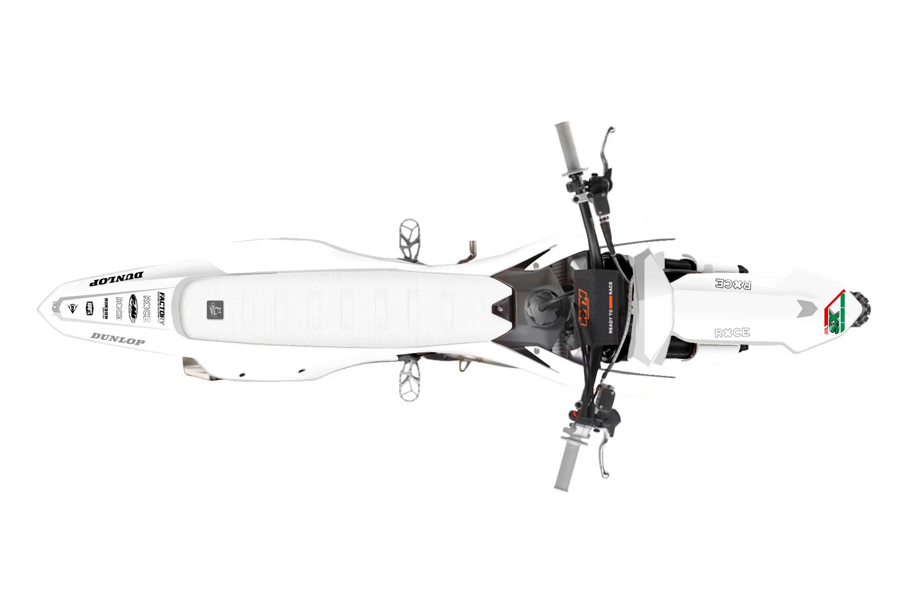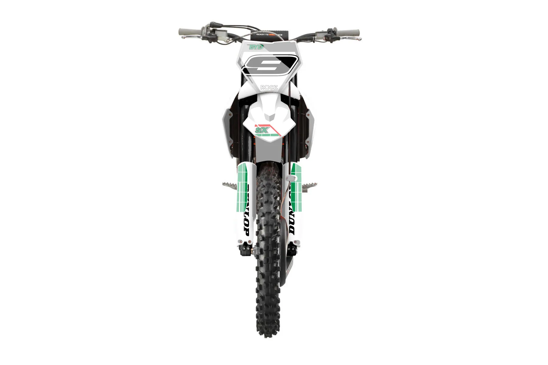 «Startup» — готовый комплект графики серии Flow для KTM MX Graphic Kit KTM SX-F 450 2023. В комплекте: графика на бак и боковые облицовки, крылья (переднее и заднее), передний щиток, номерные таблички, защита вилки. Материал: ПВХ-винил 80 мкр с холодной ламинацией 300 мкр, общая толщина 380 мкр; покрытие глянцевое или матовое на выбор. Устойчив к UV-излучению, воде, бензину и мойке высокого давления. Клей акриловый на сольвентной основе — постоянный, для гибких пластиков. На простых поверхностях монтируется без нагрева; для сложных изгибов рекомендуем фен. Этот пресет можно заказать как есть или взять за основу в конструкторе: поменять цвета, добавить стартовый номер и свой бренд. Производство — 3–5 рабочих дней, доставка по России СДЭКом или Почтой, по СНГ — курьерскими службами.