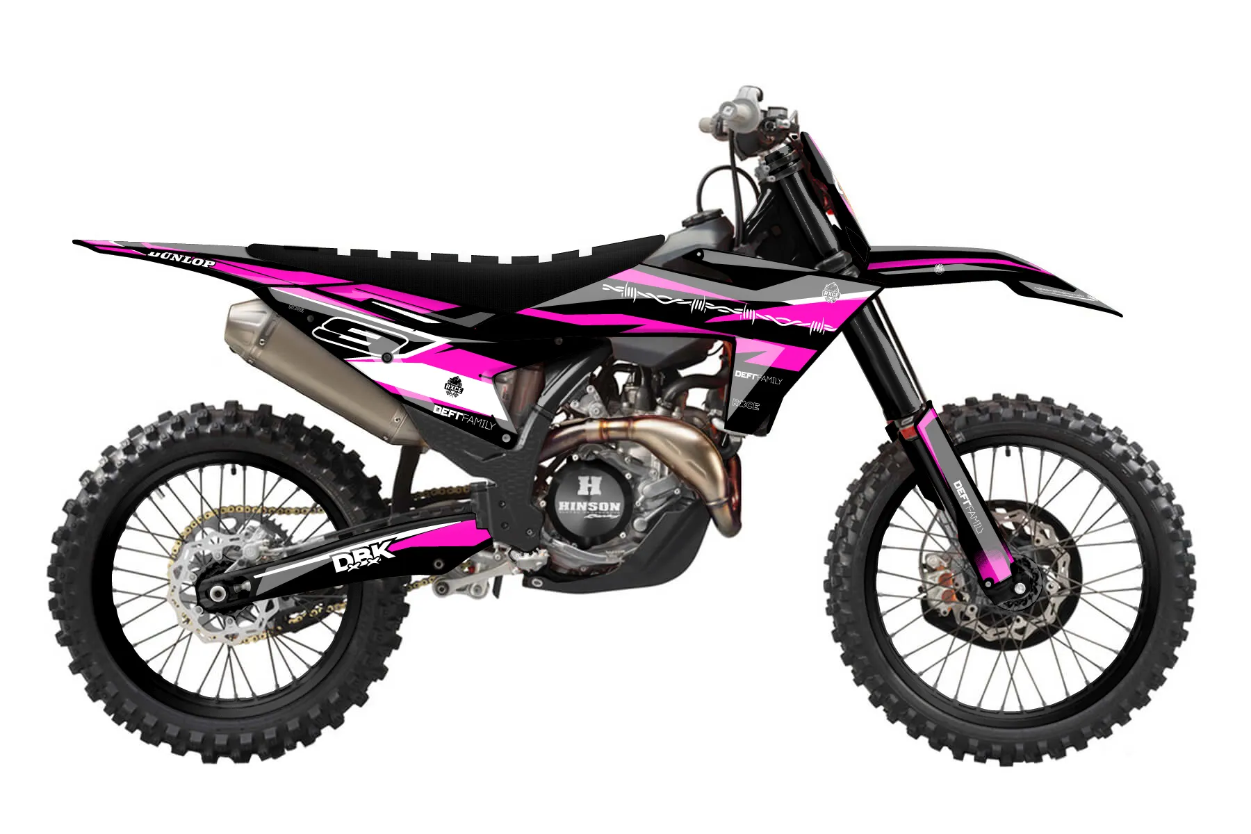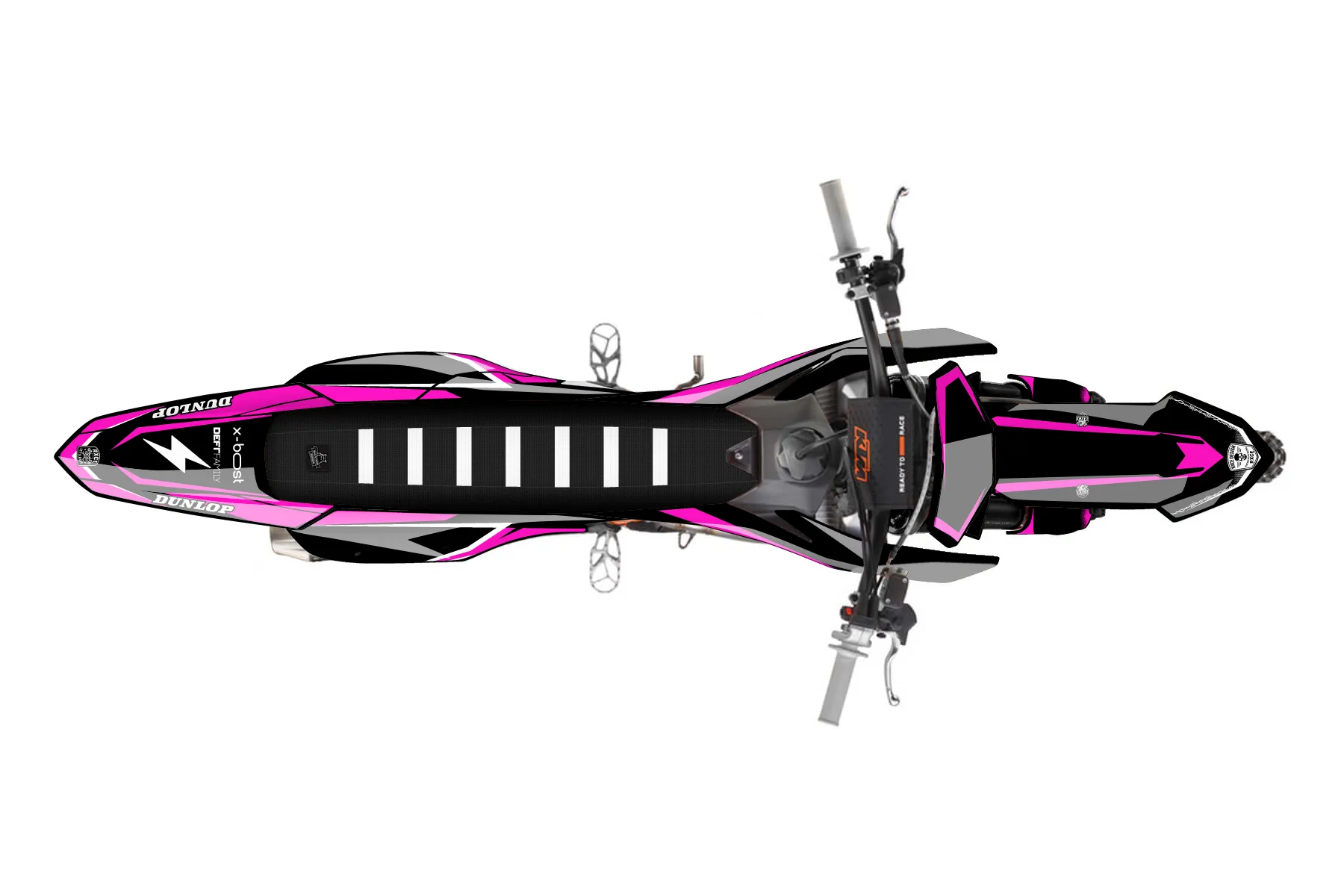 «Extreme» — готовый комплект графики серии Fusion для KTM MX Graphic Kit KTM SX-F 450 2023. В комплекте: графика на бак и боковые облицовки, крылья (переднее и заднее), передний щиток, номерные таблички, защита вилки. Материал: ПВХ-винил 80 мкр с холодной ламинацией 300 мкр, общая толщина 380 мкр; покрытие глянцевое или матовое на выбор. Устойчив к UV-излучению, воде, бензину и мойке высокого давления. Клей акриловый на сольвентной основе — постоянный, для гибких пластиков. На простых поверхностях монтируется без нагрева; для сложных изгибов рекомендуем фен. Этот пресет можно заказать как есть или взять за основу в конструкторе: поменять цвета, добавить стартовый номер и свой бренд. Производство — 3–5 рабочих дней, доставка по России СДЭКом или Почтой, по СНГ — курьерскими службами.