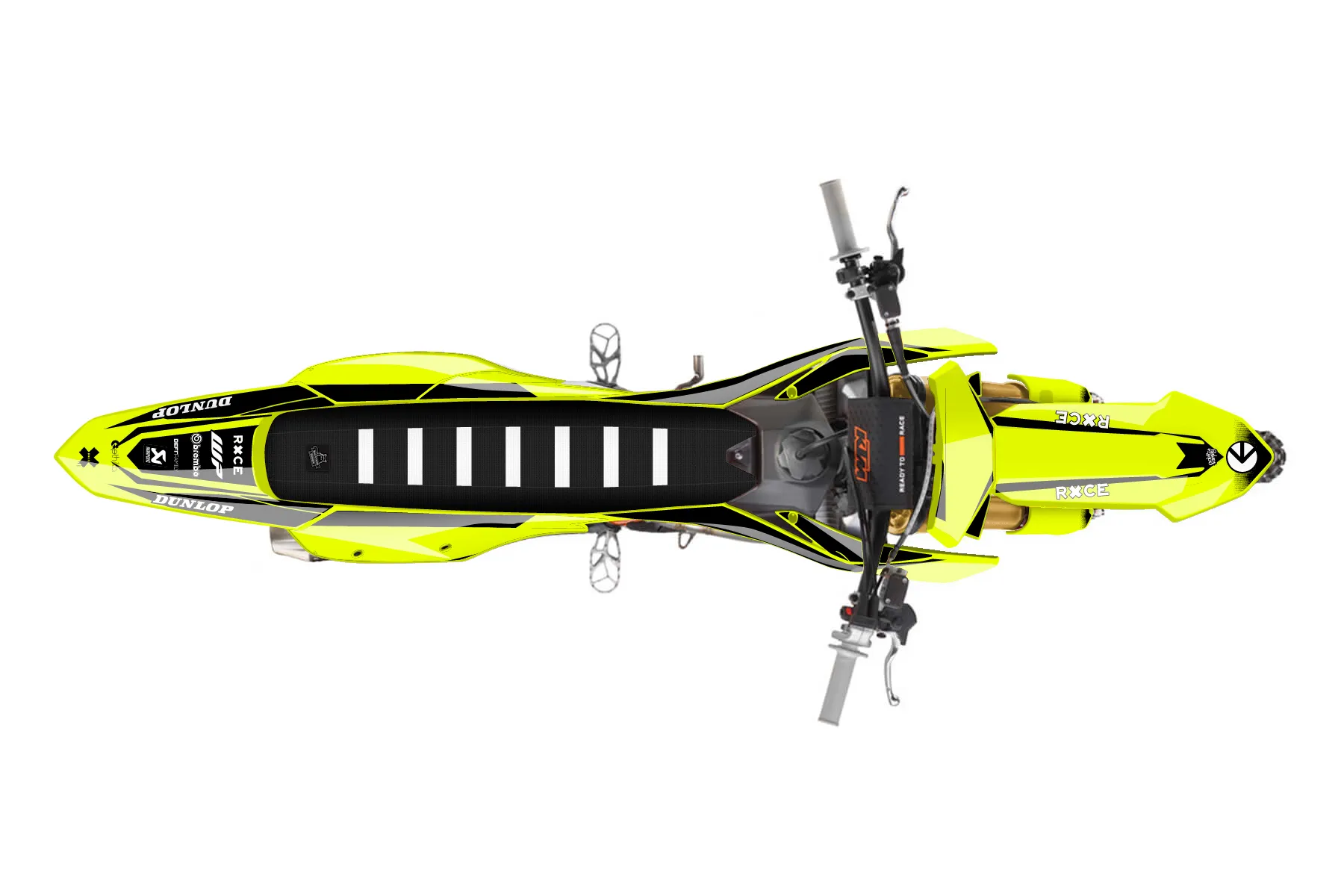 «Fuzion Fluorscent» — готовый комплект графики серии Fusion для KTM MX Graphic Kit KTM SX-F 450 2023. В комплекте: графика на бак и боковые облицовки, крылья (переднее и заднее), передний щиток, номерные таблички, защита вилки. Материал: ПВХ-винил 80 мкр с холодной ламинацией 300 мкр, общая толщина 380 мкр; покрытие глянцевое или матовое на выбор. Устойчив к UV-излучению, воде, бензину и мойке высокого давления. Клей акриловый на сольвентной основе — постоянный, для гибких пластиков. На простых поверхностях монтируется без нагрева; для сложных изгибов рекомендуем фен. Этот пресет можно заказать как есть или взять за основу в конструкторе: поменять цвета, добавить стартовый номер и свой бренд. Производство — 3–5 рабочих дней, доставка по России СДЭКом или Почтой, по СНГ — курьерскими службами.