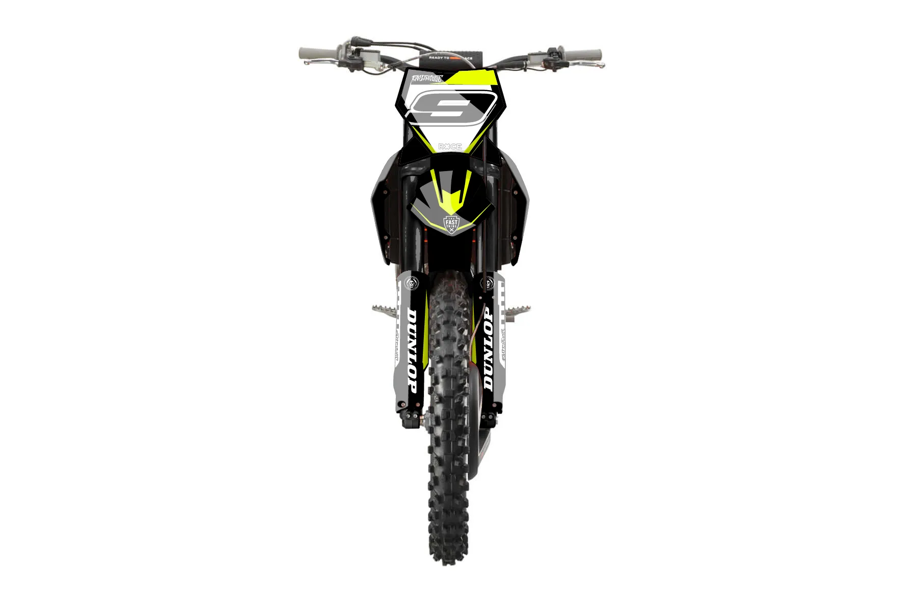 «Swirl Neon» — готовый комплект графики серии Fusion для KTM MX Graphic Kit KTM SX-F 450 2023. В комплекте: графика на бак и боковые облицовки, крылья (переднее и заднее), передний щиток, номерные таблички, защита вилки. Материал: ПВХ-винил 80 мкр с холодной ламинацией 300 мкр, общая толщина 380 мкр; покрытие глянцевое или матовое на выбор. Устойчив к UV-излучению, воде, бензину и мойке высокого давления. Клей акриловый на сольвентной основе — постоянный, для гибких пластиков. На простых поверхностях монтируется без нагрева; для сложных изгибов рекомендуем фен. Этот пресет можно заказать как есть или взять за основу в конструкторе: поменять цвета, добавить стартовый номер и свой бренд. Производство — 3–5 рабочих дней, доставка по России СДЭКом или Почтой, по СНГ — курьерскими службами.