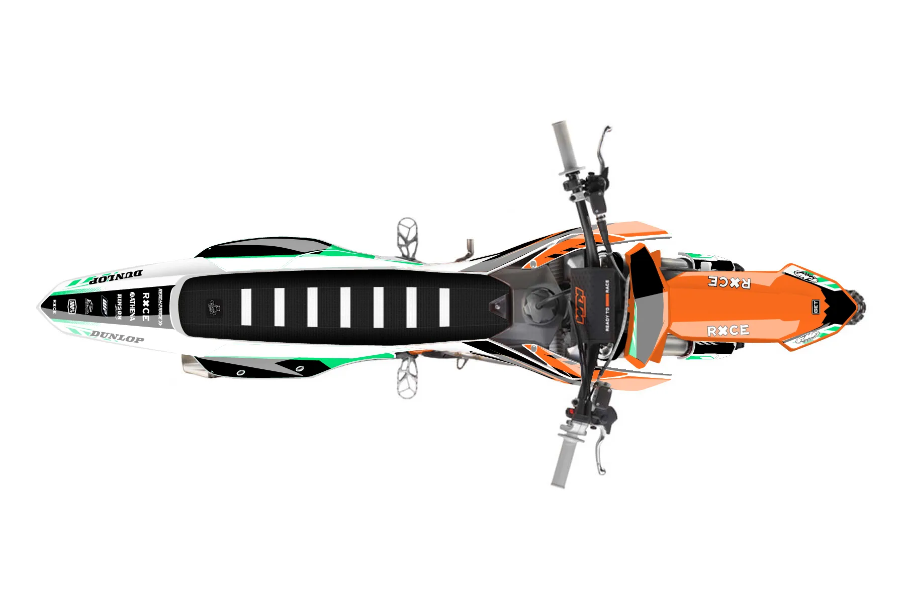 «Future» — готовый комплект графики серии Maverick для KTM MX Graphic Kit KTM SX-F 450 2023. В комплекте: графика на бак и боковые облицовки, крылья (переднее и заднее), передний щиток, номерные таблички, защита вилки. Материал: ПВХ-винил 80 мкр с холодной ламинацией 300 мкр, общая толщина 380 мкр; покрытие глянцевое или матовое на выбор. Устойчив к UV-излучению, воде, бензину и мойке высокого давления. Клей акриловый на сольвентной основе — постоянный, для гибких пластиков. На простых поверхностях монтируется без нагрева; для сложных изгибов рекомендуем фен. Этот пресет можно заказать как есть или взять за основу в конструкторе: поменять цвета, добавить стартовый номер и свой бренд. Производство — 3–5 рабочих дней, доставка по России СДЭКом или Почтой, по СНГ — курьерскими службами.