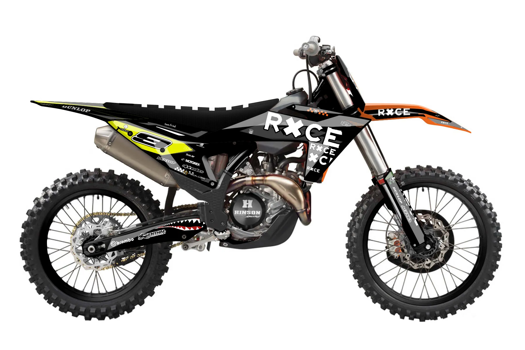 «camFINAl» — готовый комплект графики серии Staple для KTM MX Graphic Kit KTM SX-F 450 2023. В комплекте: графика на бак и боковые облицовки, крылья (переднее и заднее), передний щиток, номерные таблички, защита вилки. Материал: ПВХ-винил 80 мкр с холодной ламинацией 300 мкр, общая толщина 380 мкр; покрытие глянцевое или матовое на выбор. Устойчив к UV-излучению, воде, бензину и мойке высокого давления. Клей акриловый на сольвентной основе — постоянный, для гибких пластиков. На простых поверхностях монтируется без нагрева; для сложных изгибов рекомендуем фен. Этот пресет можно заказать как есть или взять за основу в конструкторе: поменять цвета, добавить стартовый номер и свой бренд. Производство — 3–5 рабочих дней, доставка по России СДЭКом или Почтой, по СНГ — курьерскими службами.