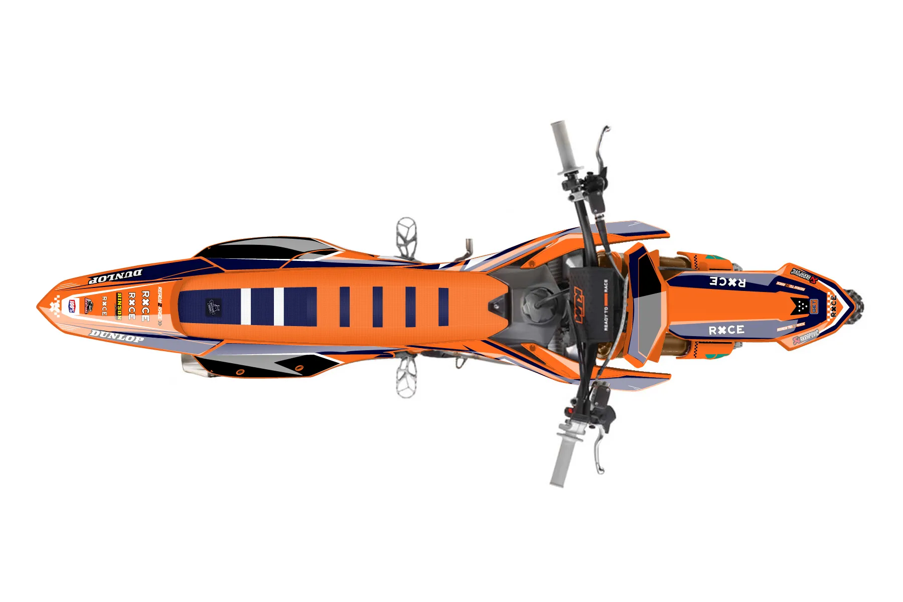 «CustomDesign» — готовый комплект графики серии Staple для KTM MX Graphic Kit KTM SX-F 450 2023. В комплекте: графика на бак и боковые облицовки, крылья (переднее и заднее), передний щиток, номерные таблички, защита вилки. Материал: ПВХ-винил 80 мкр с холодной ламинацией 300 мкр, общая толщина 380 мкр; покрытие глянцевое или матовое на выбор. Устойчив к UV-излучению, воде, бензину и мойке высокого давления. Клей акриловый на сольвентной основе — постоянный, для гибких пластиков. На простых поверхностях монтируется без нагрева; для сложных изгибов рекомендуем фен. Этот пресет можно заказать как есть или взять за основу в конструкторе: поменять цвета, добавить стартовый номер и свой бренд. Производство — 3–5 рабочих дней, доставка по России СДЭКом или Почтой, по СНГ — курьерскими службами.
