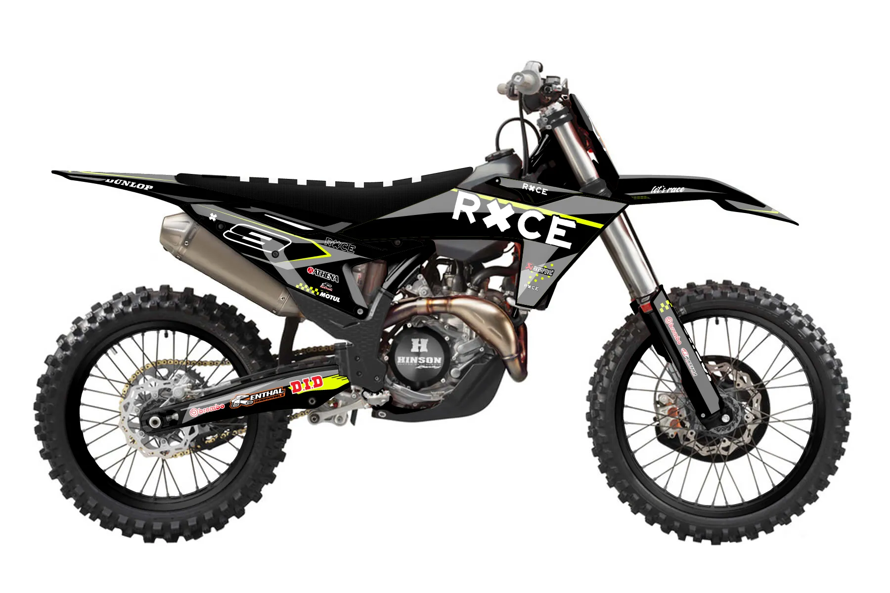 «Refuse Neon» — готовый комплект графики серии Staple для KTM MX Graphic Kit KTM SX-F 450 2023. В комплекте: графика на бак и боковые облицовки, крылья (переднее и заднее), передний щиток, номерные таблички, защита вилки. Материал: ПВХ-винил 80 мкр с холодной ламинацией 300 мкр, общая толщина 380 мкр; покрытие глянцевое или матовое на выбор. Устойчив к UV-излучению, воде, бензину и мойке высокого давления. Клей акриловый на сольвентной основе — постоянный, для гибких пластиков. На простых поверхностях монтируется без нагрева; для сложных изгибов рекомендуем фен. Этот пресет можно заказать как есть или взять за основу в конструкторе: поменять цвета, добавить стартовый номер и свой бренд. Производство — 3–5 рабочих дней, доставка по России СДЭКом или Почтой, по СНГ — курьерскими службами.