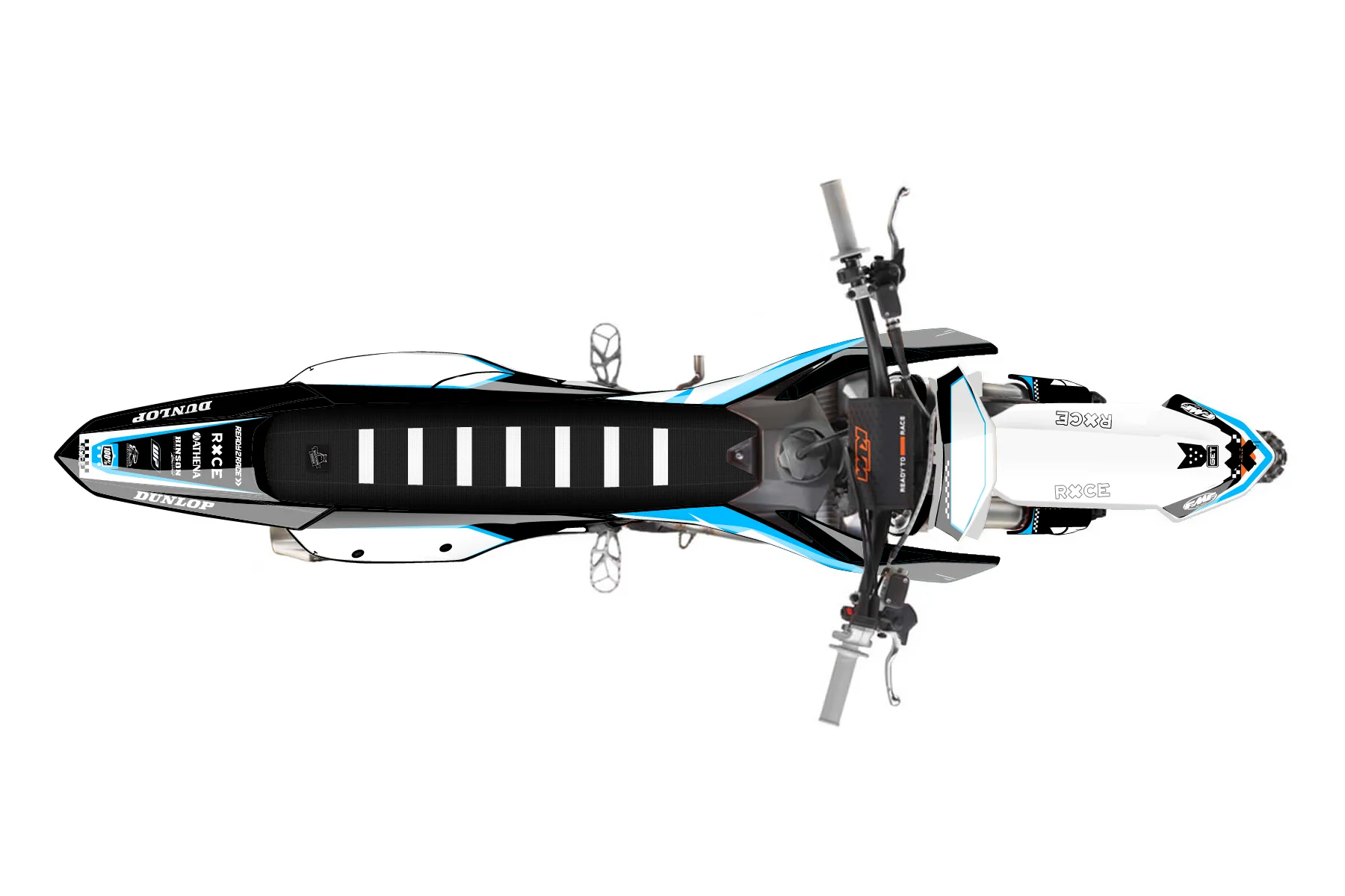 «Rule» — готовый комплект графики серии Staple для KTM MX Graphic Kit KTM SX-F 450 2023. В комплекте: графика на бак и боковые облицовки, крылья (переднее и заднее), передний щиток, номерные таблички, защита вилки. Материал: ПВХ-винил 80 мкр с холодной ламинацией 300 мкр, общая толщина 380 мкр; покрытие глянцевое или матовое на выбор. Устойчив к UV-излучению, воде, бензину и мойке высокого давления. Клей акриловый на сольвентной основе — постоянный, для гибких пластиков. На простых поверхностях монтируется без нагрева; для сложных изгибов рекомендуем фен. Этот пресет можно заказать как есть или взять за основу в конструкторе: поменять цвета, добавить стартовый номер и свой бренд. Производство — 3–5 рабочих дней, доставка по России СДЭКом или Почтой, по СНГ — курьерскими службами.