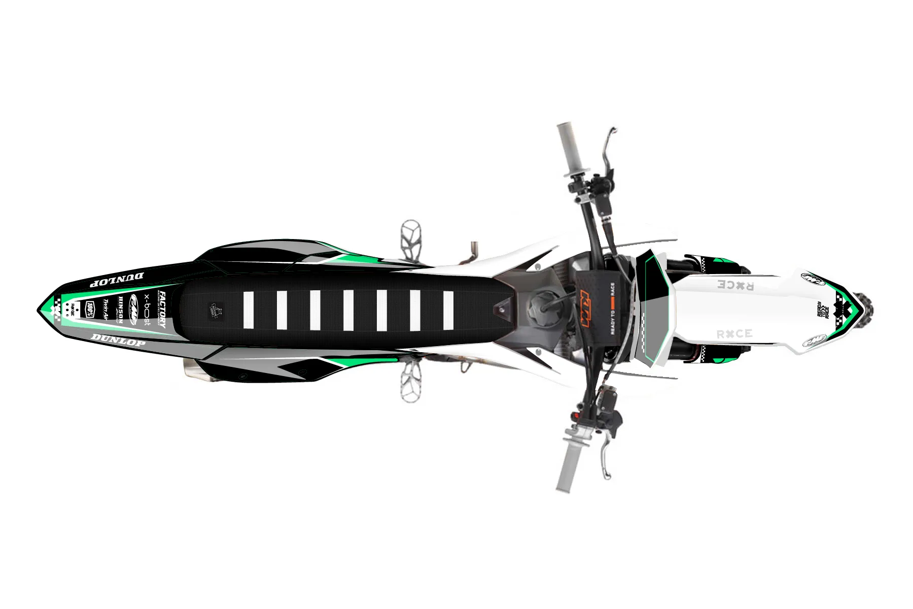 «Supervision» — готовый комплект графики серии Staple для KTM MX Graphic Kit KTM SX-F 450 2023. В комплекте: графика на бак и боковые облицовки, крылья (переднее и заднее), передний щиток, номерные таблички, защита вилки. Материал: ПВХ-винил 80 мкр с холодной ламинацией 300 мкр, общая толщина 380 мкр; покрытие глянцевое или матовое на выбор. Устойчив к UV-излучению, воде, бензину и мойке высокого давления. Клей акриловый на сольвентной основе — постоянный, для гибких пластиков. На простых поверхностях монтируется без нагрева; для сложных изгибов рекомендуем фен. Этот пресет можно заказать как есть или взять за основу в конструкторе: поменять цвета, добавить стартовый номер и свой бренд. Производство — 3–5 рабочих дней, доставка по России СДЭКом или Почтой, по СНГ — курьерскими службами.