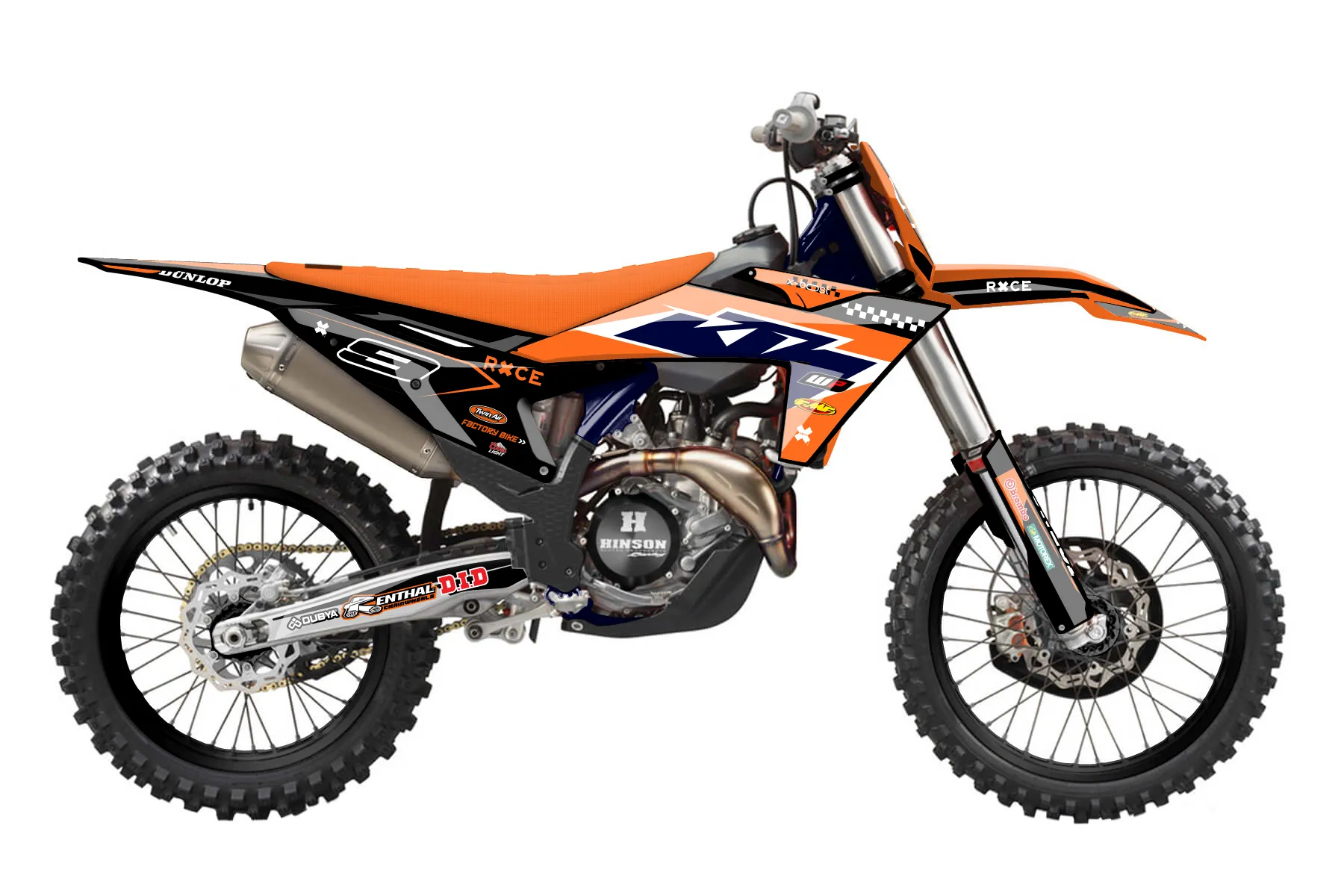 «Tracy» — готовый комплект графики серии Staple для KTM MX Graphic Kit KTM SX-F 450 2023. В комплекте: графика на бак и боковые облицовки, крылья (переднее и заднее), передний щиток, номерные таблички, защита вилки. Материал: ПВХ-винил 80 мкр с холодной ламинацией 300 мкр, общая толщина 380 мкр; покрытие глянцевое или матовое на выбор. Устойчив к UV-излучению, воде, бензину и мойке высокого давления. Клей акриловый на сольвентной основе — постоянный, для гибких пластиков. На простых поверхностях монтируется без нагрева; для сложных изгибов рекомендуем фен. Этот пресет можно заказать как есть или взять за основу в конструкторе: поменять цвета, добавить стартовый номер и свой бренд. Производство — 3–5 рабочих дней, доставка по России СДЭКом или Почтой, по СНГ — курьерскими службами.