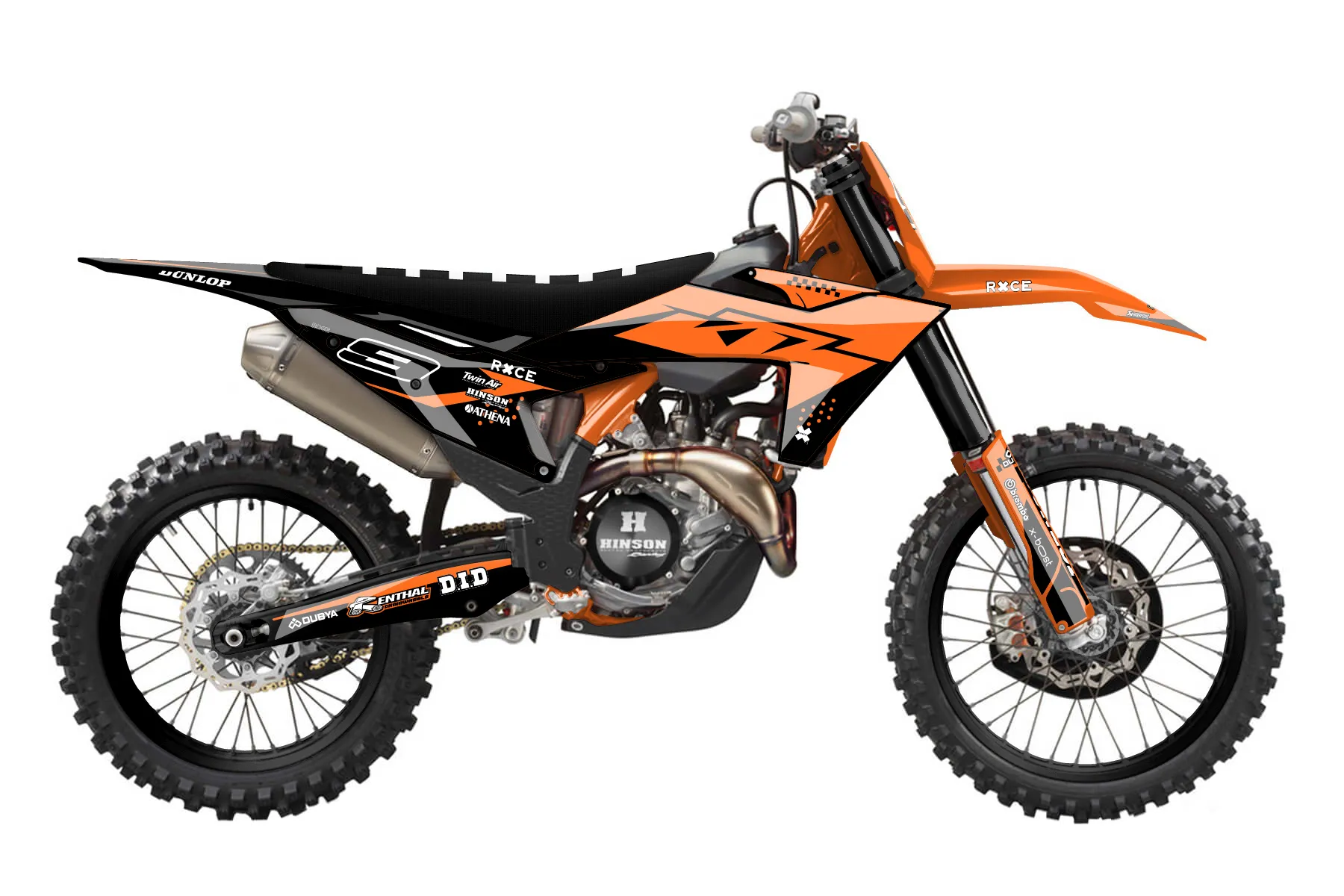 «Trait» — готовый комплект графики серии Staple для KTM MX Graphic Kit KTM SX-F 450 2023. В комплекте: графика на бак и боковые облицовки, крылья (переднее и заднее), передний щиток, номерные таблички, защита вилки. Материал: ПВХ-винил 80 мкр с холодной ламинацией 300 мкр, общая толщина 380 мкр; покрытие глянцевое или матовое на выбор. Устойчив к UV-излучению, воде, бензину и мойке высокого давления. Клей акриловый на сольвентной основе — постоянный, для гибких пластиков. На простых поверхностях монтируется без нагрева; для сложных изгибов рекомендуем фен. Этот пресет можно заказать как есть или взять за основу в конструкторе: поменять цвета, добавить стартовый номер и свой бренд. Производство — 3–5 рабочих дней, доставка по России СДЭКом или Почтой, по СНГ — курьерскими службами.