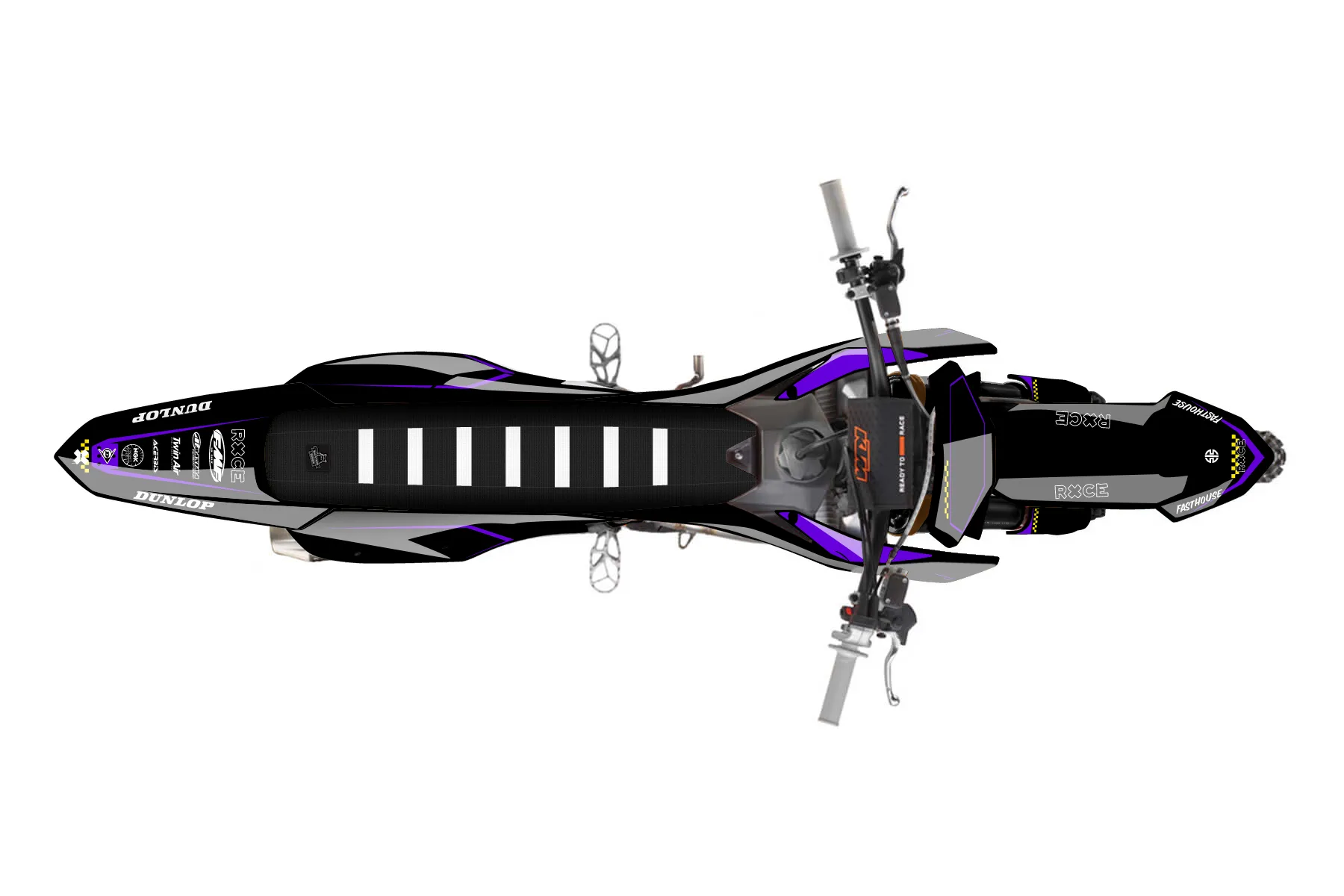«Virtual» — готовый комплект графики серии Staple для KTM MX Graphic Kit KTM SX-F 450 2023. В комплекте: графика на бак и боковые облицовки, крылья (переднее и заднее), передний щиток, номерные таблички, защита вилки. Материал: ПВХ-винил 80 мкр с холодной ламинацией 300 мкр, общая толщина 380 мкр; покрытие глянцевое или матовое на выбор. Устойчив к UV-излучению, воде, бензину и мойке высокого давления. Клей акриловый на сольвентной основе — постоянный, для гибких пластиков. На простых поверхностях монтируется без нагрева; для сложных изгибов рекомендуем фен. Этот пресет можно заказать как есть или взять за основу в конструкторе: поменять цвета, добавить стартовый номер и свой бренд. Производство — 3–5 рабочих дней, доставка по России СДЭКом или Почтой, по СНГ — курьерскими службами.