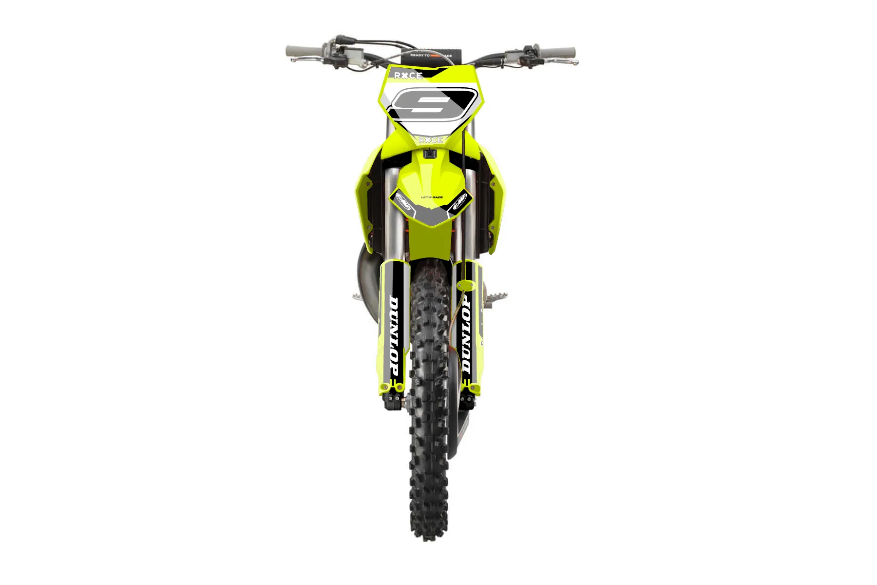 «Bright Neon» — готовый комплект графики серии Maverick для KTM MX Graphic Kit KTM SX-F 450 2025. В комплекте: графика на бак и боковые облицовки, крылья (переднее и заднее), передний щиток, номерные таблички, защита вилки. Материал: ПВХ-винил 80 мкр с холодной ламинацией 300 мкр, общая толщина 380 мкр; покрытие глянцевое или матовое на выбор. Устойчив к UV-излучению, воде, бензину и мойке высокого давления. Клей акриловый на сольвентной основе — постоянный, для гибких пластиков. На простых поверхностях монтируется без нагрева; для сложных изгибов рекомендуем фен. Этот пресет можно заказать как есть или взять за основу в конструкторе: поменять цвета, добавить стартовый номер и свой бренд. Производство — 3–5 рабочих дней, доставка по России СДЭКом или Почтой, по СНГ — курьерскими службами.