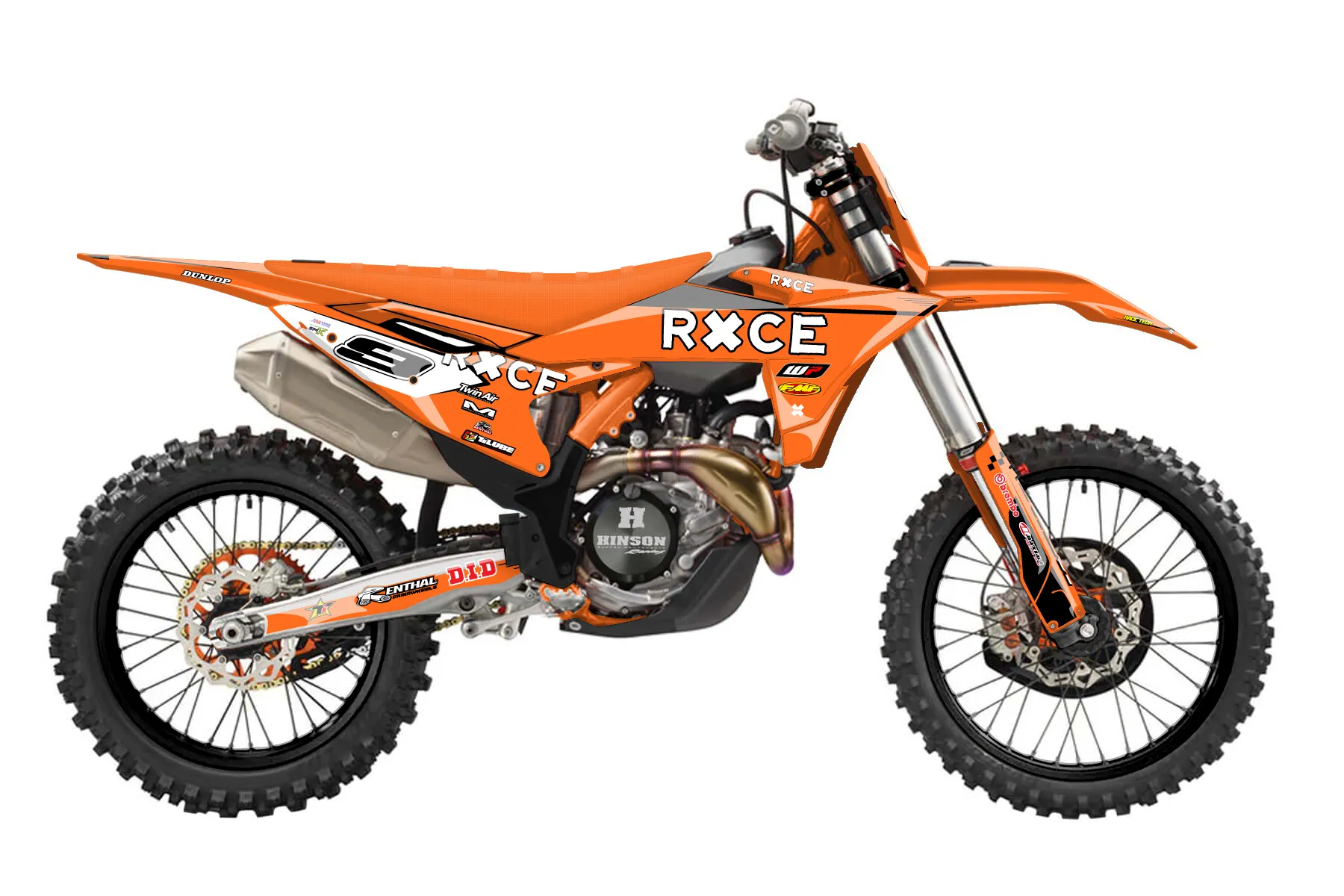 «ktm 418» — готовый комплект графики серии Staple для KTM MX Graphic Kit KTM SX-F 450 2025. В комплекте: графика на бак и боковые облицовки, крылья (переднее и заднее), передний щиток, номерные таблички, защита вилки. Материал: ПВХ-винил 80 мкр с холодной ламинацией 300 мкр, общая толщина 380 мкр; покрытие глянцевое или матовое на выбор. Устойчив к UV-излучению, воде, бензину и мойке высокого давления. Клей акриловый на сольвентной основе — постоянный, для гибких пластиков. На простых поверхностях монтируется без нагрева; для сложных изгибов рекомендуем фен. Этот пресет можно заказать как есть или взять за основу в конструкторе: поменять цвета, добавить стартовый номер и свой бренд. Производство — 3–5 рабочих дней, доставка по России СДЭКом или Почтой, по СНГ — курьерскими службами.