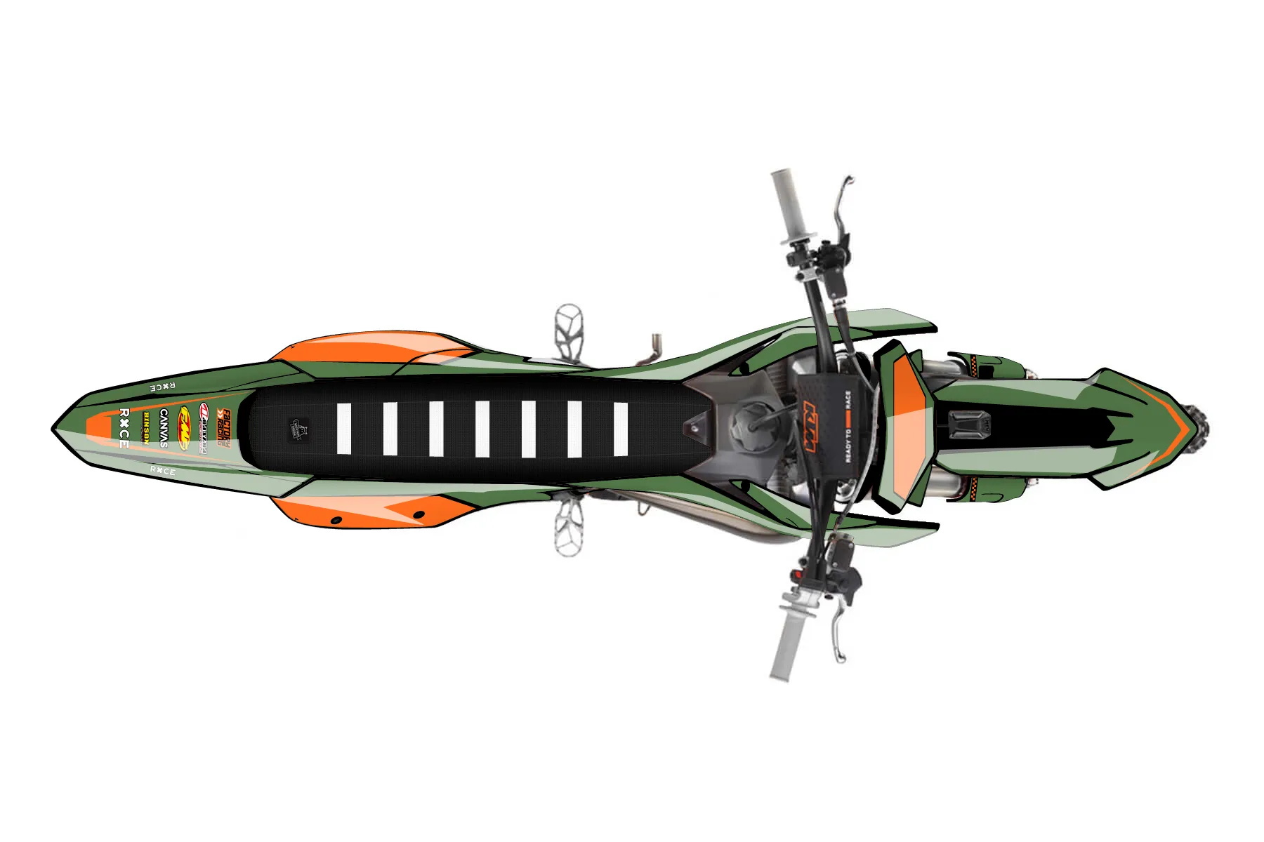 «New Throttle Maps» — готовый комплект графики серии Staple для KTM MX Graphic Kit KTM SX-F 450 2025. В комплекте: графика на бак и боковые облицовки, крылья (переднее и заднее), передний щиток, номерные таблички, защита вилки. Материал: ПВХ-винил 80 мкр с холодной ламинацией 300 мкр, общая толщина 380 мкр; покрытие глянцевое или матовое на выбор. Устойчив к UV-излучению, воде, бензину и мойке высокого давления. Клей акриловый на сольвентной основе — постоянный, для гибких пластиков. На простых поверхностях монтируется без нагрева; для сложных изгибов рекомендуем фен. Этот пресет можно заказать как есть или взять за основу в конструкторе: поменять цвета, добавить стартовый номер и свой бренд. Производство — 3–5 рабочих дней, доставка по России СДЭКом или Почтой, по СНГ — курьерскими службами.