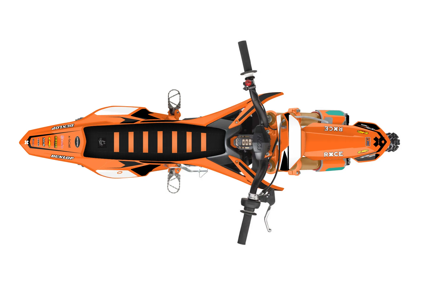 «Space» — готовый комплект графики серии Flow для KTM MX Graphic Kit KTM SX-E 5 2019. В комплекте: графика на бак и боковые облицовки, крылья (переднее и заднее), передний щиток, номерные таблички, защита вилки. Материал: ПВХ-винил 80 мкр с холодной ламинацией 300 мкр, общая толщина 380 мкр; покрытие глянцевое или матовое на выбор. Устойчив к UV-излучению, воде, бензину и мойке высокого давления. Клей акриловый на сольвентной основе — постоянный, для гибких пластиков. На простых поверхностях монтируется без нагрева; для сложных изгибов рекомендуем фен. Этот пресет можно заказать как есть или взять за основу в конструкторе: поменять цвета, добавить стартовый номер и свой бренд. Производство — 3–5 рабочих дней, доставка по России СДЭКом или Почтой, по СНГ — курьерскими службами.