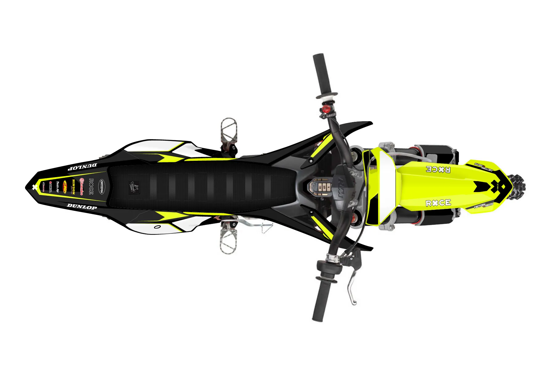 «Throwback» — готовый комплект графики серии Flow для KTM MX Graphic Kit KTM SX-E 5 2019. В комплекте: графика на бак и боковые облицовки, крылья (переднее и заднее), передний щиток, номерные таблички, защита вилки. Материал: ПВХ-винил 80 мкр с холодной ламинацией 300 мкр, общая толщина 380 мкр; покрытие глянцевое или матовое на выбор. Устойчив к UV-излучению, воде, бензину и мойке высокого давления. Клей акриловый на сольвентной основе — постоянный, для гибких пластиков. На простых поверхностях монтируется без нагрева; для сложных изгибов рекомендуем фен. Этот пресет можно заказать как есть или взять за основу в конструкторе: поменять цвета, добавить стартовый номер и свой бренд. Производство — 3–5 рабочих дней, доставка по России СДЭКом или Почтой, по СНГ — курьерскими службами.