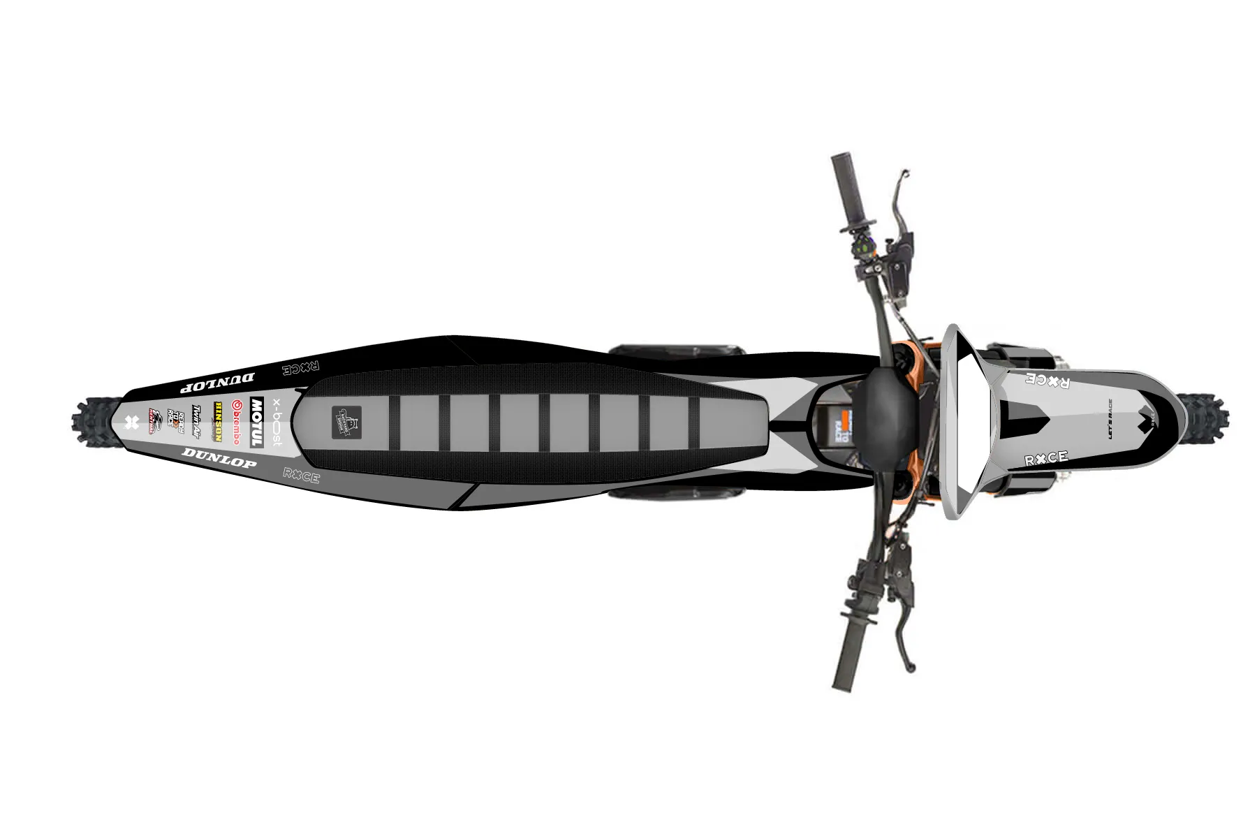 «Concepts» — готовый комплект графики серии Flow для KTM MX Graphic Kit KTM SX-E 2 2024. В комплекте: графика на бак и боковые облицовки, крылья (переднее и заднее), передний щиток, номерные таблички, защита вилки. Материал: ПВХ-винил 80 мкр с холодной ламинацией 300 мкр, общая толщина 380 мкр; покрытие глянцевое или матовое на выбор. Устойчив к UV-излучению, воде, бензину и мойке высокого давления. Клей акриловый на сольвентной основе — постоянный, для гибких пластиков. На простых поверхностях монтируется без нагрева; для сложных изгибов рекомендуем фен. Этот пресет можно заказать как есть или взять за основу в конструкторе: поменять цвета, добавить стартовый номер и свой бренд. Производство — 3–5 рабочих дней, доставка по России СДЭКом или Почтой, по СНГ — курьерскими службами.