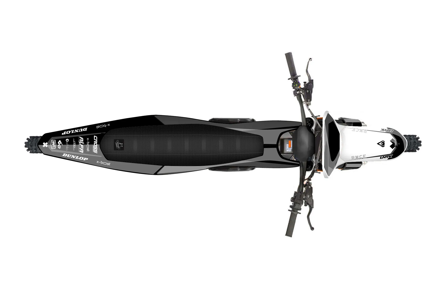 «Decal» — готовый комплект графики серии Flow для KTM MX Graphic Kit KTM SX-E 2 2024. В комплекте: графика на бак и боковые облицовки, крылья (переднее и заднее), передний щиток, номерные таблички, защита вилки. Материал: ПВХ-винил 80 мкр с холодной ламинацией 300 мкр, общая толщина 380 мкр; покрытие глянцевое или матовое на выбор. Устойчив к UV-излучению, воде, бензину и мойке высокого давления. Клей акриловый на сольвентной основе — постоянный, для гибких пластиков. На простых поверхностях монтируется без нагрева; для сложных изгибов рекомендуем фен. Этот пресет можно заказать как есть или взять за основу в конструкторе: поменять цвета, добавить стартовый номер и свой бренд. Производство — 3–5 рабочих дней, доставка по России СДЭКом или Почтой, по СНГ — курьерскими службами.
