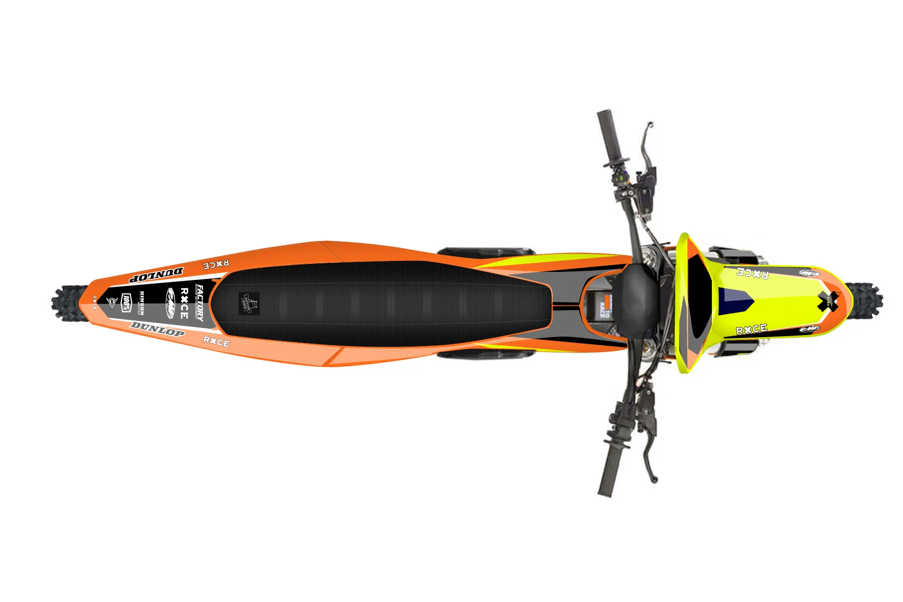 «Fluorescent» — готовый комплект графики серии Flow для KTM MX Graphic Kit KTM SX-E 2 2024. В комплекте: графика на бак и боковые облицовки, крылья (переднее и заднее), передний щиток, номерные таблички, защита вилки. Материал: ПВХ-винил 80 мкр с холодной ламинацией 300 мкр, общая толщина 380 мкр; покрытие глянцевое или матовое на выбор. Устойчив к UV-излучению, воде, бензину и мойке высокого давления. Клей акриловый на сольвентной основе — постоянный, для гибких пластиков. На простых поверхностях монтируется без нагрева; для сложных изгибов рекомендуем фен. Этот пресет можно заказать как есть или взять за основу в конструкторе: поменять цвета, добавить стартовый номер и свой бренд. Производство — 3–5 рабочих дней, доставка по России СДЭКом или Почтой, по СНГ — курьерскими службами.