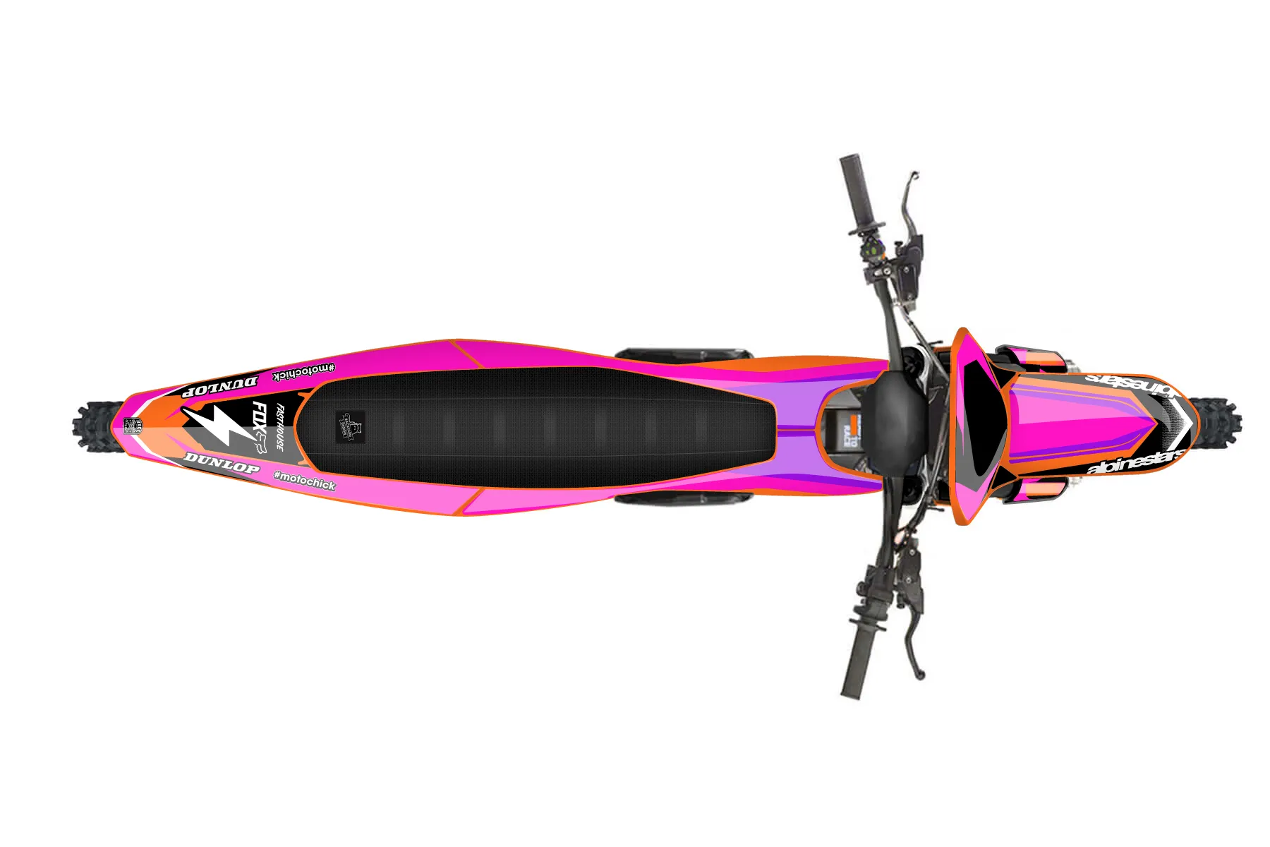 «ORRracing» — готовый комплект графики серии Fusion для KTM MX Graphic Kit KTM SX-E 2 2024. В комплекте: графика на бак и боковые облицовки, крылья (переднее и заднее), передний щиток, номерные таблички, защита вилки. Материал: ПВХ-винил 80 мкр с холодной ламинацией 300 мкр, общая толщина 380 мкр; покрытие глянцевое или матовое на выбор. Устойчив к UV-излучению, воде, бензину и мойке высокого давления. Клей акриловый на сольвентной основе — постоянный, для гибких пластиков. На простых поверхностях монтируется без нагрева; для сложных изгибов рекомендуем фен. Этот пресет можно заказать как есть или взять за основу в конструкторе: поменять цвета, добавить стартовый номер и свой бренд. Производство — 3–5 рабочих дней, доставка по России СДЭКом или Почтой, по СНГ — курьерскими службами.