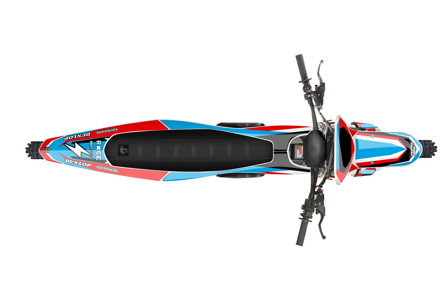 «Reid E2» — готовый комплект графики серии Fusion для KTM MX Graphic Kit KTM SX-E 2 2024. В комплекте: графика на бак и боковые облицовки, крылья (переднее и заднее), передний щиток, номерные таблички, защита вилки. Материал: ПВХ-винил 80 мкр с холодной ламинацией 300 мкр, общая толщина 380 мкр; покрытие глянцевое или матовое на выбор. Устойчив к UV-излучению, воде, бензину и мойке высокого давления. Клей акриловый на сольвентной основе — постоянный, для гибких пластиков. На простых поверхностях монтируется без нагрева; для сложных изгибов рекомендуем фен. Этот пресет можно заказать как есть или взять за основу в конструкторе: поменять цвета, добавить стартовый номер и свой бренд. Производство — 3–5 рабочих дней, доставка по России СДЭКом или Почтой, по СНГ — курьерскими службами.