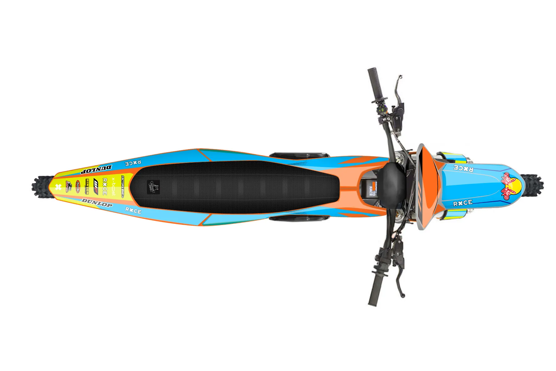 «25 E2» — готовый комплект графики серии Maverick для KTM MX Graphic Kit KTM SX-E 2 2024. В комплекте: графика на бак и боковые облицовки, крылья (переднее и заднее), передний щиток, номерные таблички, защита вилки. Материал: ПВХ-винил 80 мкр с холодной ламинацией 300 мкр, общая толщина 380 мкр; покрытие глянцевое или матовое на выбор. Устойчив к UV-излучению, воде, бензину и мойке высокого давления. Клей акриловый на сольвентной основе — постоянный, для гибких пластиков. На простых поверхностях монтируется без нагрева; для сложных изгибов рекомендуем фен. Этот пресет можно заказать как есть или взять за основу в конструкторе: поменять цвета, добавить стартовый номер и свой бренд. Производство — 3–5 рабочих дней, доставка по России СДЭКом или Почтой, по СНГ — курьерскими службами.