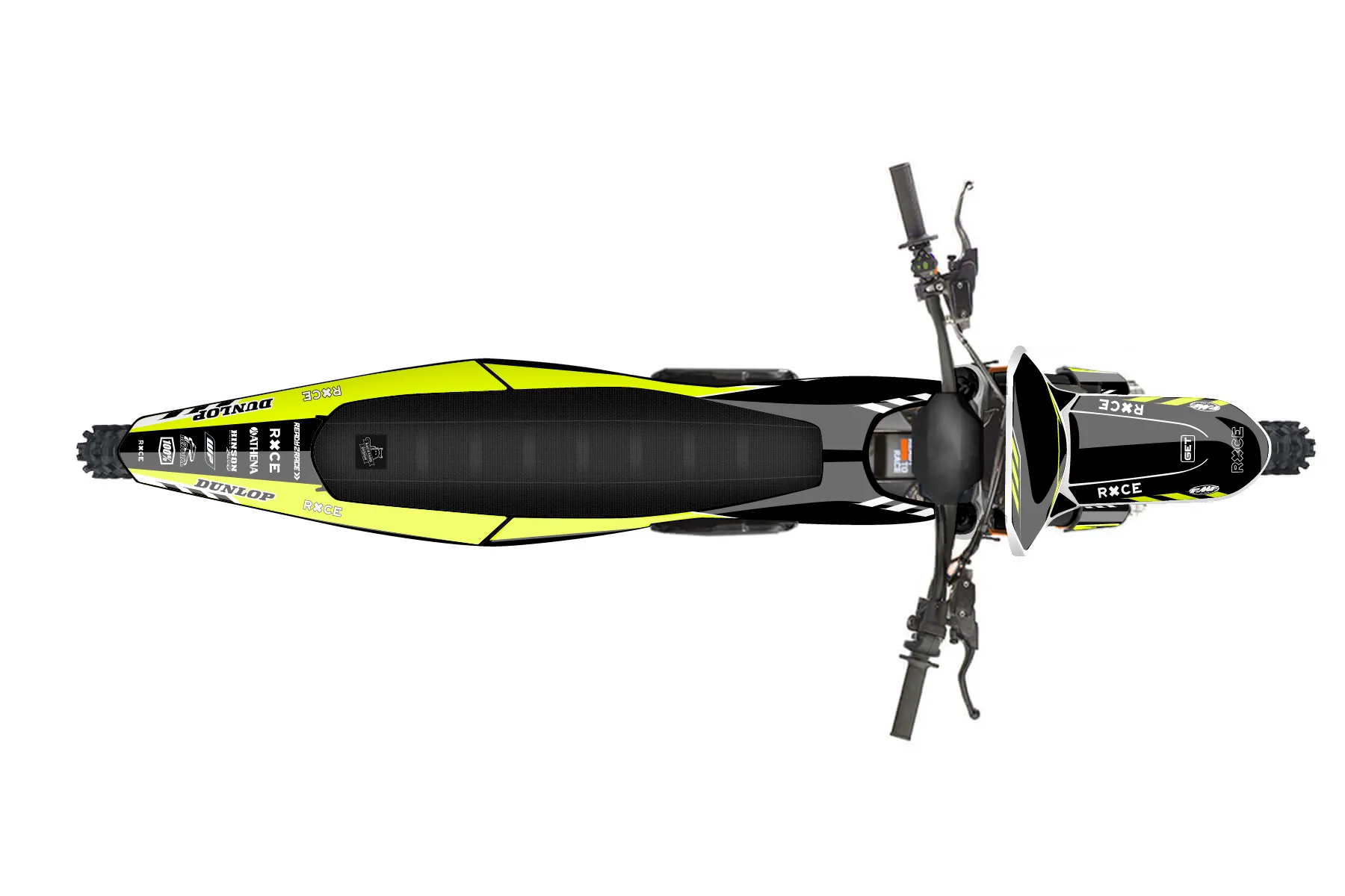 «Daze Fluo» — готовый комплект графики серии Maverick для KTM MX Graphic Kit KTM SX-E 2 2024. В комплекте: графика на бак и боковые облицовки, крылья (переднее и заднее), передний щиток, номерные таблички, защита вилки. Материал: ПВХ-винил 80 мкр с холодной ламинацией 300 мкр, общая толщина 380 мкр; покрытие глянцевое или матовое на выбор. Устойчив к UV-излучению, воде, бензину и мойке высокого давления. Клей акриловый на сольвентной основе — постоянный, для гибких пластиков. На простых поверхностях монтируется без нагрева; для сложных изгибов рекомендуем фен. Этот пресет можно заказать как есть или взять за основу в конструкторе: поменять цвета, добавить стартовый номер и свой бренд. Производство — 3–5 рабочих дней, доставка по России СДЭКом или Почтой, по СНГ — курьерскими службами.