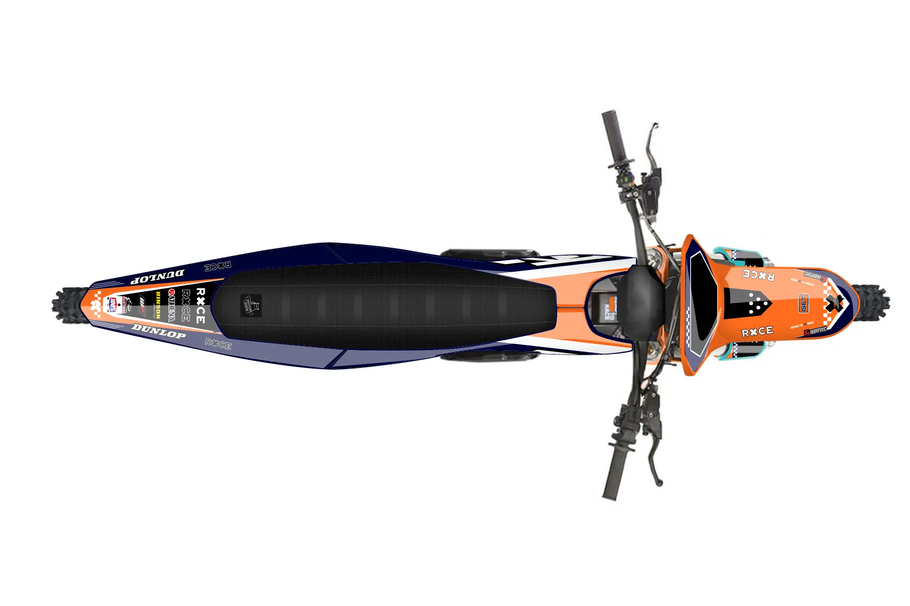 «Rage» — готовый комплект графики серии Staple для KTM MX Graphic Kit KTM SX-E 2 2024. В комплекте: графика на бак и боковые облицовки, крылья (переднее и заднее), передний щиток, номерные таблички, защита вилки. Материал: ПВХ-винил 80 мкр с холодной ламинацией 300 мкр, общая толщина 380 мкр; покрытие глянцевое или матовое на выбор. Устойчив к UV-излучению, воде, бензину и мойке высокого давления. Клей акриловый на сольвентной основе — постоянный, для гибких пластиков. На простых поверхностях монтируется без нагрева; для сложных изгибов рекомендуем фен. Этот пресет можно заказать как есть или взять за основу в конструкторе: поменять цвета, добавить стартовый номер и свой бренд. Производство — 3–5 рабочих дней, доставка по России СДЭКом или Почтой, по СНГ — курьерскими службами.
