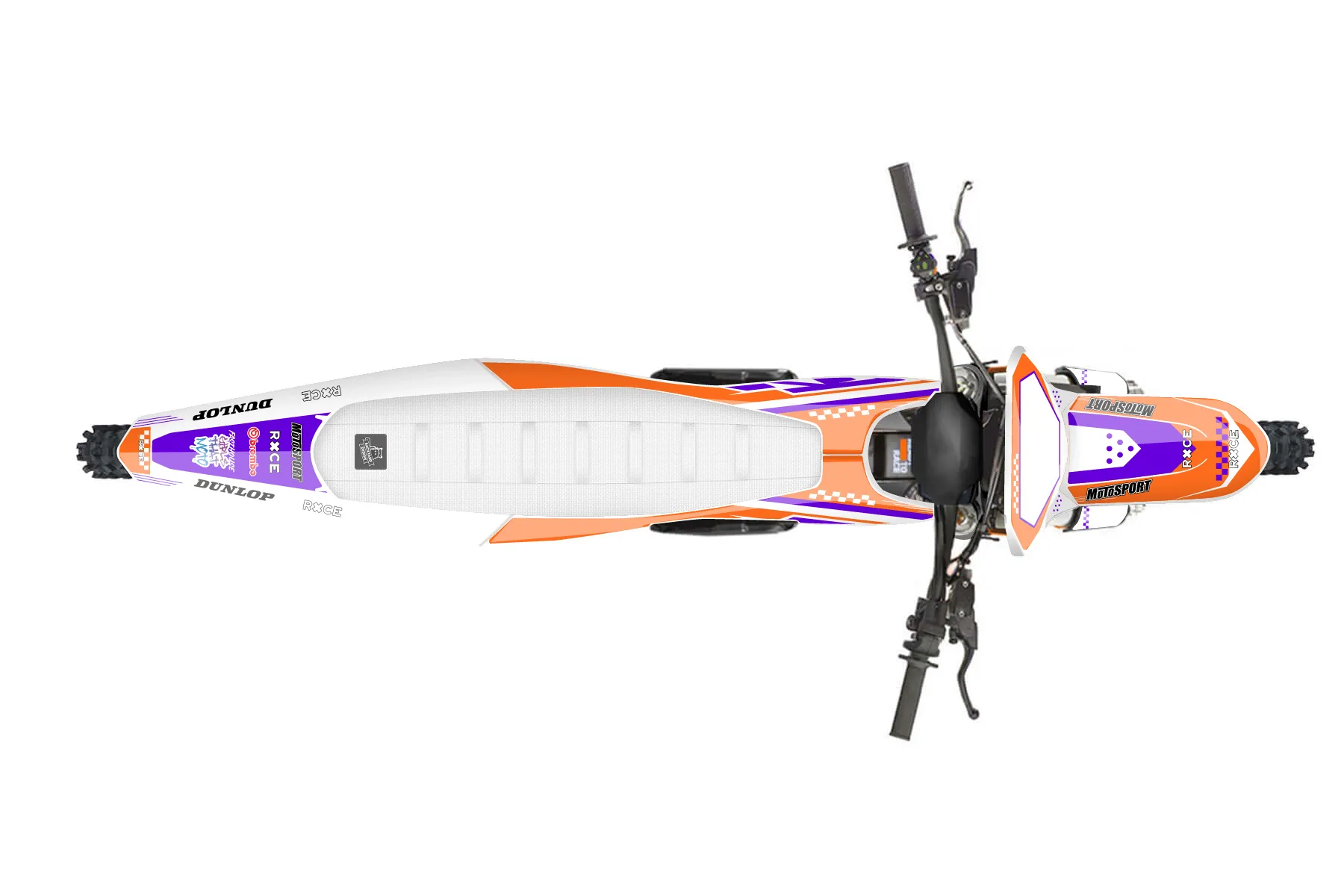 «Rilynn E2» — готовый комплект графики серии Staple для KTM MX Graphic Kit KTM SX-E 2 2024. В комплекте: графика на бак и боковые облицовки, крылья (переднее и заднее), передний щиток, номерные таблички, защита вилки. Материал: ПВХ-винил 80 мкр с холодной ламинацией 300 мкр, общая толщина 380 мкр; покрытие глянцевое или матовое на выбор. Устойчив к UV-излучению, воде, бензину и мойке высокого давления. Клей акриловый на сольвентной основе — постоянный, для гибких пластиков. На простых поверхностях монтируется без нагрева; для сложных изгибов рекомендуем фен. Этот пресет можно заказать как есть или взять за основу в конструкторе: поменять цвета, добавить стартовый номер и свой бренд. Производство — 3–5 рабочих дней, доставка по России СДЭКом или Почтой, по СНГ — курьерскими службами.