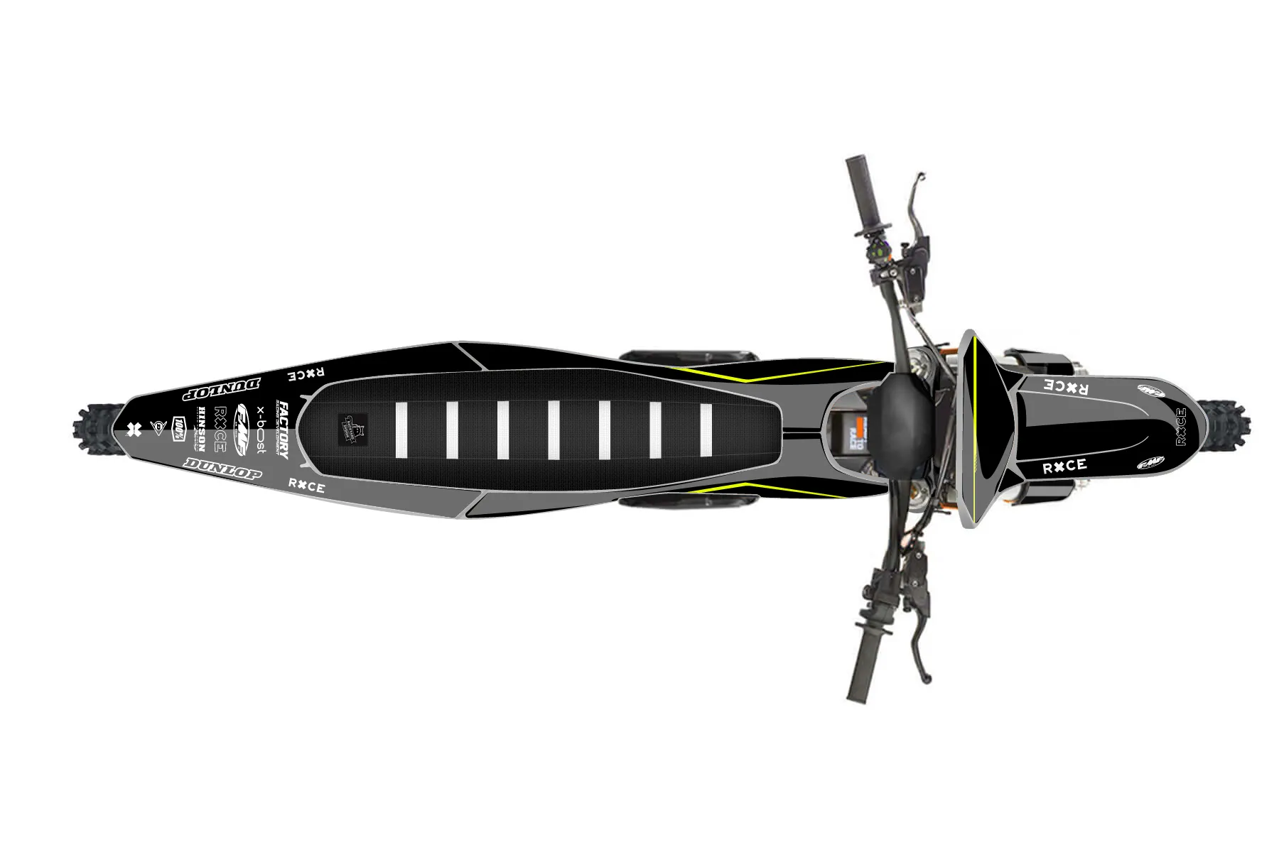 «Warp Neon» — готовый комплект графики серии Untucked для KTM MX Graphic Kit KTM SX-E 2 2024. В комплекте: графика на бак и боковые облицовки, крылья (переднее и заднее), передний щиток, номерные таблички, защита вилки. Материал: ПВХ-винил 80 мкр с холодной ламинацией 300 мкр, общая толщина 380 мкр; покрытие глянцевое или матовое на выбор. Устойчив к UV-излучению, воде, бензину и мойке высокого давления. Клей акриловый на сольвентной основе — постоянный, для гибких пластиков. На простых поверхностях монтируется без нагрева; для сложных изгибов рекомендуем фен. Этот пресет можно заказать как есть или взять за основу в конструкторе: поменять цвета, добавить стартовый номер и свой бренд. Производство — 3–5 рабочих дней, доставка по России СДЭКом или Почтой, по СНГ — курьерскими службами.