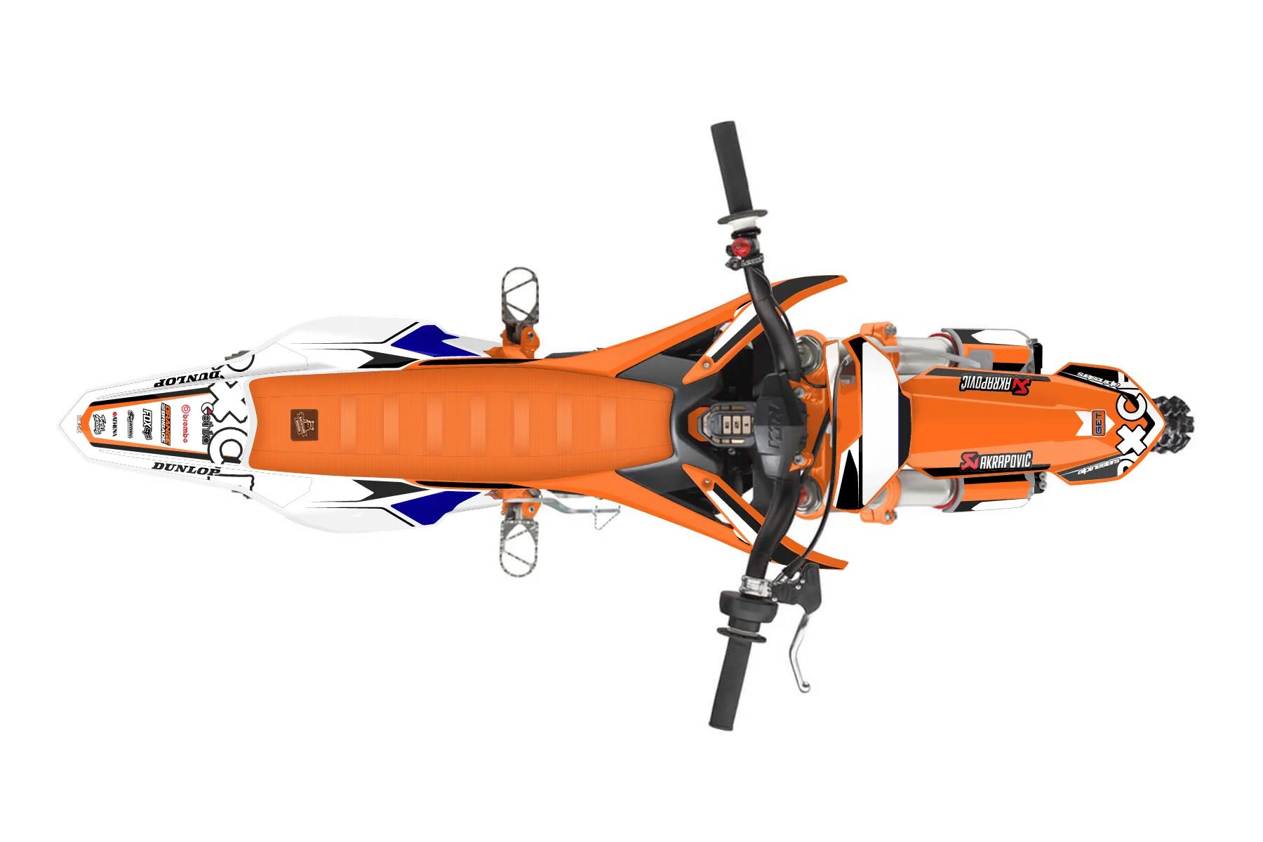 «Bishop E3» — готовый комплект графики серии Flow для KTM MX Graphic Kit KTM SX-E 5 2019. В комплекте: графика на бак и боковые облицовки, крылья (переднее и заднее), передний щиток, номерные таблички, защита вилки. Материал: ПВХ-винил 80 мкр с холодной ламинацией 300 мкр, общая толщина 380 мкр; покрытие глянцевое или матовое на выбор. Устойчив к UV-излучению, воде, бензину и мойке высокого давления. Клей акриловый на сольвентной основе — постоянный, для гибких пластиков. На простых поверхностях монтируется без нагрева; для сложных изгибов рекомендуем фен. Этот пресет можно заказать как есть или взять за основу в конструкторе: поменять цвета, добавить стартовый номер и свой бренд. Производство — 3–5 рабочих дней, доставка по России СДЭКом или Почтой, по СНГ — курьерскими службами.