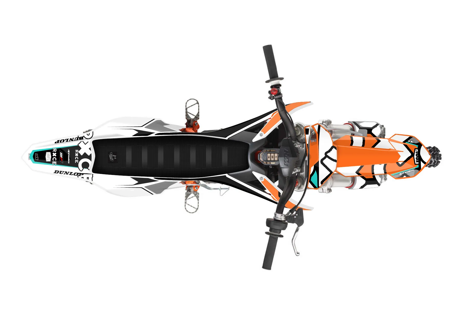 «Gas Bike 1» — готовый комплект графики серии Flow для KTM MX Graphic Kit KTM SX-E 5 2019. В комплекте: графика на бак и боковые облицовки, крылья (переднее и заднее), передний щиток, номерные таблички, защита вилки. Материал: ПВХ-винил 80 мкр с холодной ламинацией 300 мкр, общая толщина 380 мкр; покрытие глянцевое или матовое на выбор. Устойчив к UV-излучению, воде, бензину и мойке высокого давления. Клей акриловый на сольвентной основе — постоянный, для гибких пластиков. На простых поверхностях монтируется без нагрева; для сложных изгибов рекомендуем фен. Этот пресет можно заказать как есть или взять за основу в конструкторе: поменять цвета, добавить стартовый номер и свой бренд. Производство — 3–5 рабочих дней, доставка по России СДЭКом или Почтой, по СНГ — курьерскими службами.