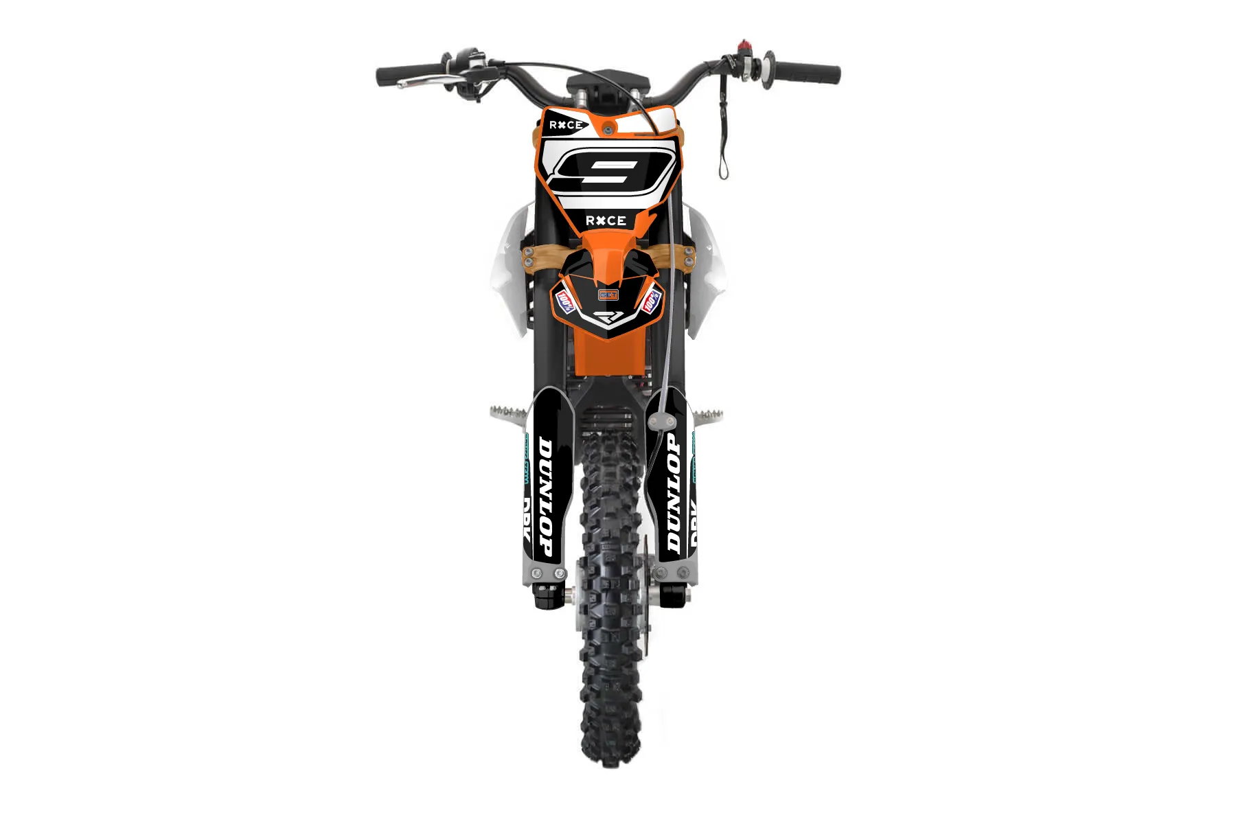 «KTM E 1» — готовый комплект графики серии Flow для KTM MX Graphic Kit KTM SX-E 5 2019. В комплекте: графика на бак и боковые облицовки, крылья (переднее и заднее), передний щиток, номерные таблички, защита вилки. Материал: ПВХ-винил 80 мкр с холодной ламинацией 300 мкр, общая толщина 380 мкр; покрытие глянцевое или матовое на выбор. Устойчив к UV-излучению, воде, бензину и мойке высокого давления. Клей акриловый на сольвентной основе — постоянный, для гибких пластиков. На простых поверхностях монтируется без нагрева; для сложных изгибов рекомендуем фен. Этот пресет можно заказать как есть или взять за основу в конструкторе: поменять цвета, добавить стартовый номер и свой бренд. Производство — 3–5 рабочих дней, доставка по России СДЭКом или Почтой, по СНГ — курьерскими службами.