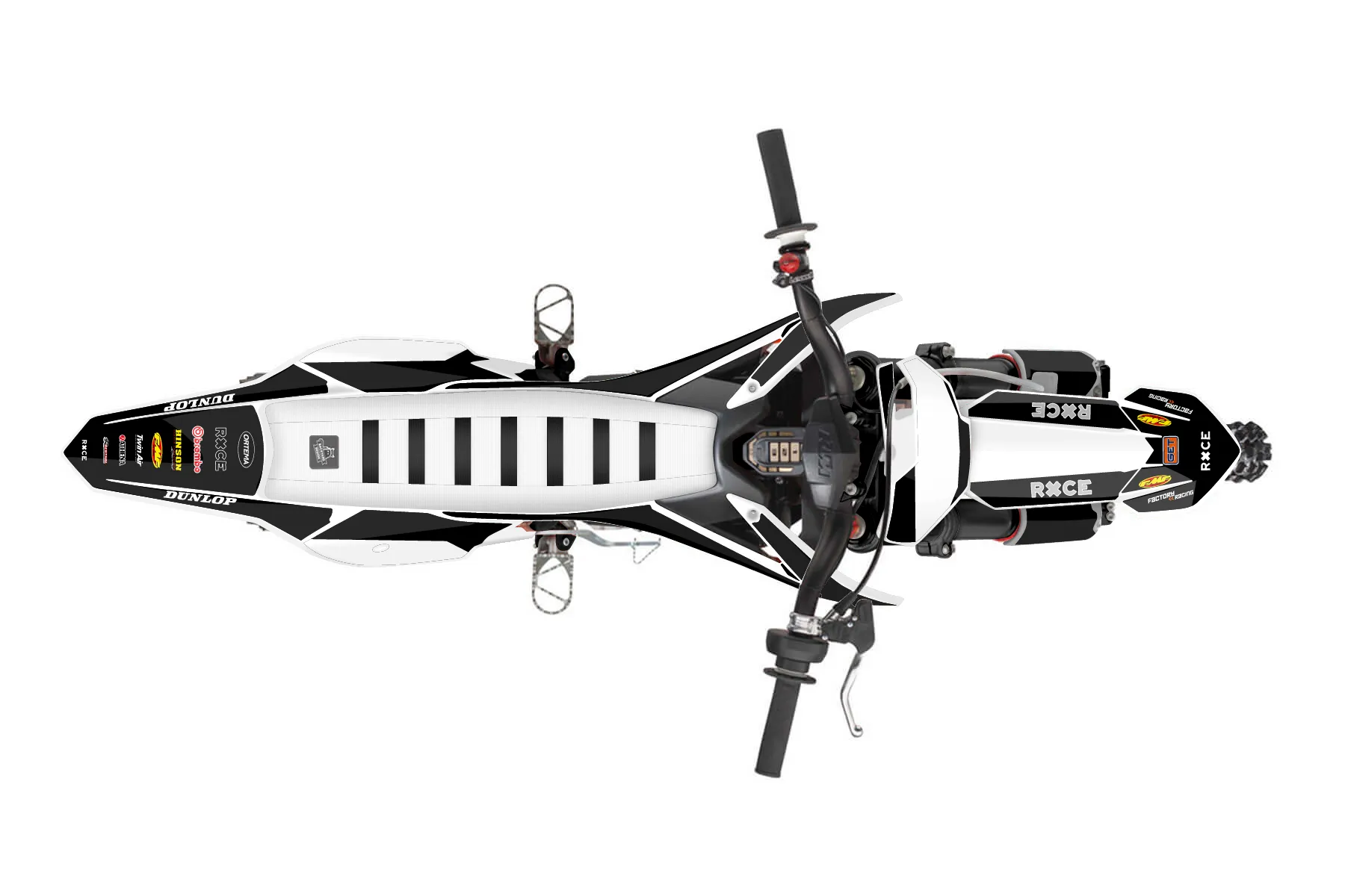 «CustomDesign» — готовый комплект графики серии Maverick для KTM MX Graphic Kit KTM SX-E 5 2019. В комплекте: графика на бак и боковые облицовки, крылья (переднее и заднее), передний щиток, номерные таблички, защита вилки. Материал: ПВХ-винил 80 мкр с холодной ламинацией 300 мкр, общая толщина 380 мкр; покрытие глянцевое или матовое на выбор. Устойчив к UV-излучению, воде, бензину и мойке высокого давления. Клей акриловый на сольвентной основе — постоянный, для гибких пластиков. На простых поверхностях монтируется без нагрева; для сложных изгибов рекомендуем фен. Этот пресет можно заказать как есть или взять за основу в конструкторе: поменять цвета, добавить стартовый номер и свой бренд. Производство — 3–5 рабочих дней, доставка по России СДЭКом или Почтой, по СНГ — курьерскими службами.
