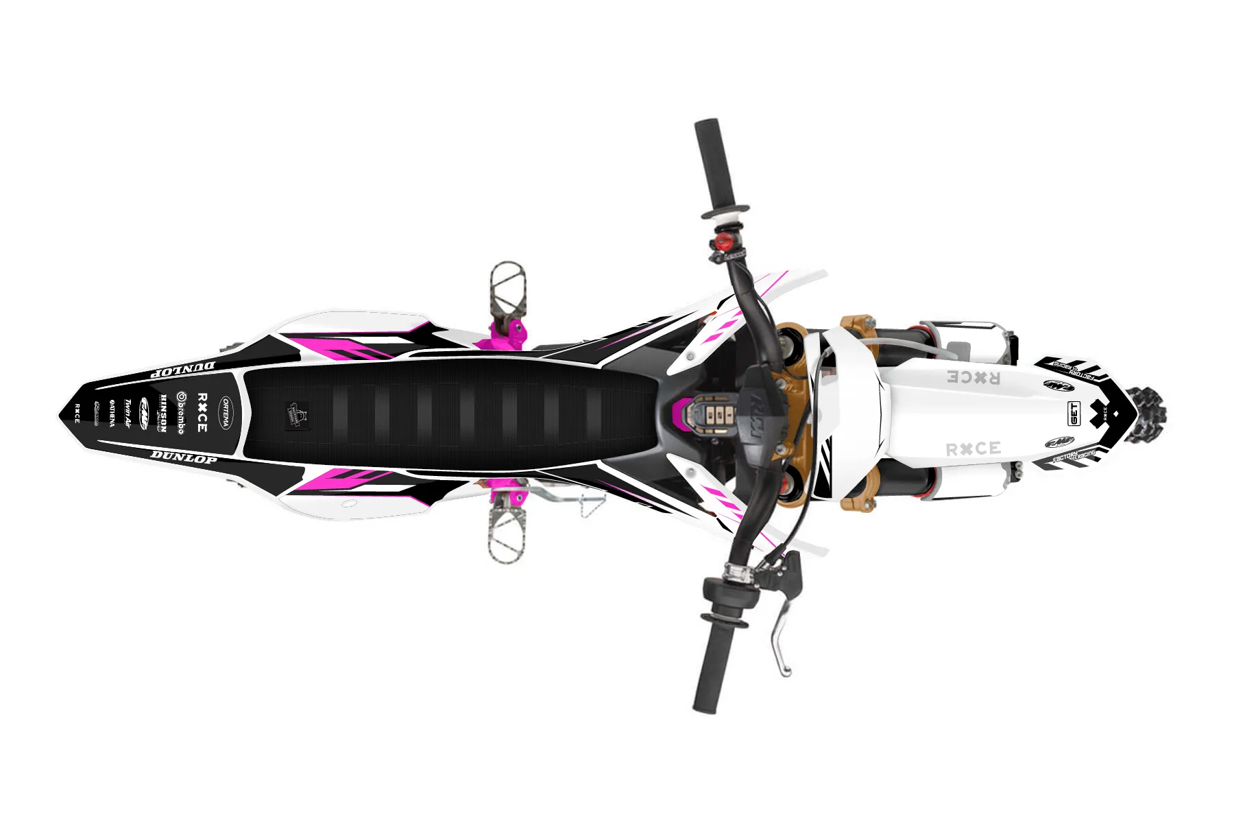 «E5» — готовый комплект графики серии Maverick для KTM MX Graphic Kit KTM SX-E 5 2019. В комплекте: графика на бак и боковые облицовки, крылья (переднее и заднее), передний щиток, номерные таблички, защита вилки. Материал: ПВХ-винил 80 мкр с холодной ламинацией 300 мкр, общая толщина 380 мкр; покрытие глянцевое или матовое на выбор. Устойчив к UV-излучению, воде, бензину и мойке высокого давления. Клей акриловый на сольвентной основе — постоянный, для гибких пластиков. На простых поверхностях монтируется без нагрева; для сложных изгибов рекомендуем фен. Этот пресет можно заказать как есть или взять за основу в конструкторе: поменять цвета, добавить стартовый номер и свой бренд. Производство — 3–5 рабочих дней, доставка по России СДЭКом или Почтой, по СНГ — курьерскими службами.