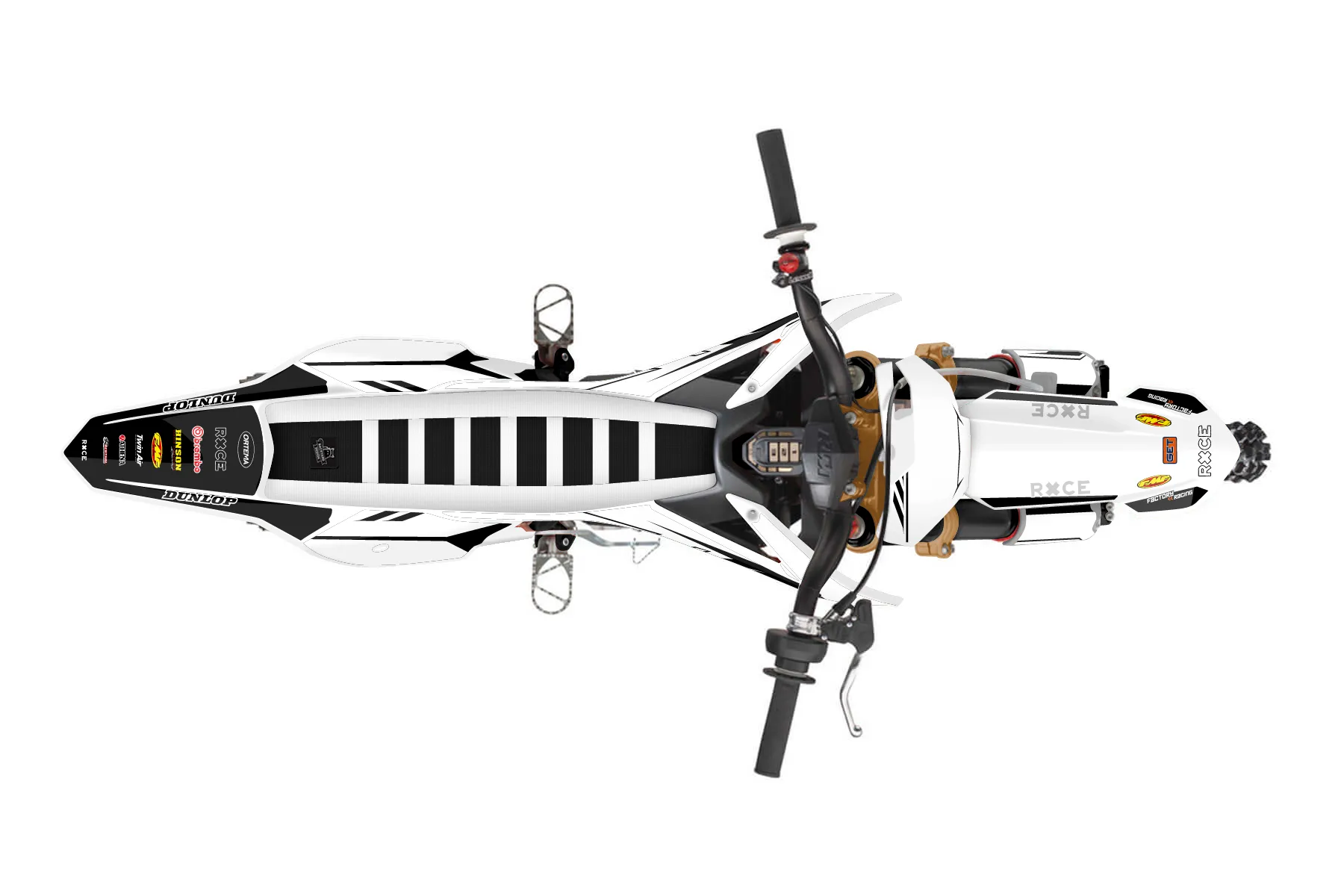 «Signature» — готовый комплект графики серии Maverick для KTM MX Graphic Kit KTM SX-E 5 2019. В комплекте: графика на бак и боковые облицовки, крылья (переднее и заднее), передний щиток, номерные таблички, защита вилки. Материал: ПВХ-винил 80 мкр с холодной ламинацией 300 мкр, общая толщина 380 мкр; покрытие глянцевое или матовое на выбор. Устойчив к UV-излучению, воде, бензину и мойке высокого давления. Клей акриловый на сольвентной основе — постоянный, для гибких пластиков. На простых поверхностях монтируется без нагрева; для сложных изгибов рекомендуем фен. Этот пресет можно заказать как есть или взять за основу в конструкторе: поменять цвета, добавить стартовый номер и свой бренд. Производство — 3–5 рабочих дней, доставка по России СДЭКом или Почтой, по СНГ — курьерскими службами.