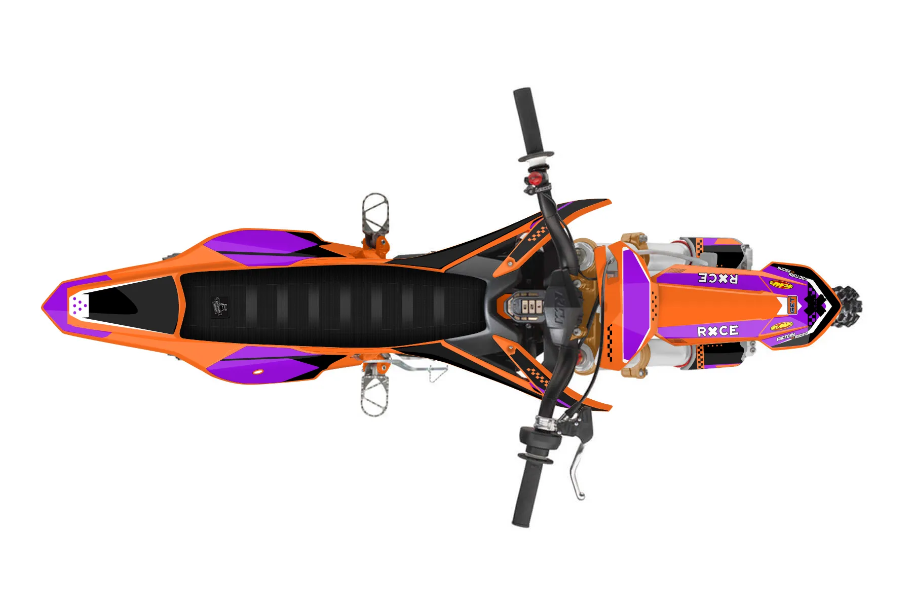 «Sx E5» — готовый комплект графики серии Staple для KTM MX Graphic Kit KTM SX-E 5 2019. В комплекте: графика на бак и боковые облицовки, крылья (переднее и заднее), передний щиток, номерные таблички, защита вилки. Материал: ПВХ-винил 80 мкр с холодной ламинацией 300 мкр, общая толщина 380 мкр; покрытие глянцевое или матовое на выбор. Устойчив к UV-излучению, воде, бензину и мойке высокого давления. Клей акриловый на сольвентной основе — постоянный, для гибких пластиков. На простых поверхностях монтируется без нагрева; для сложных изгибов рекомендуем фен. Этот пресет можно заказать как есть или взять за основу в конструкторе: поменять цвета, добавить стартовый номер и свой бренд. Производство — 3–5 рабочих дней, доставка по России СДЭКом или Почтой, по СНГ — курьерскими службами.