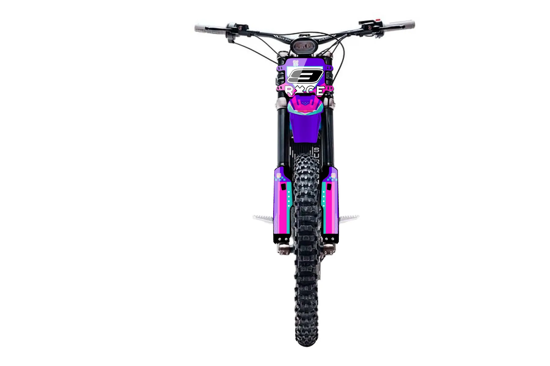 «addygirl final?» — готовый комплект графики серии Staple для Sur-Ron Sur-Ron Light Bee Offroad 2015. В комплекте: графика на бак и боковые облицовки, крылья (переднее и заднее), передний щиток, номерные таблички, защита вилки. Материал: ПВХ-винил 80 мкр с холодной ламинацией 300 мкр, общая толщина 380 мкр; покрытие глянцевое или матовое на выбор. Устойчив к UV-излучению, воде, бензину и мойке высокого давления. Клей акриловый на сольвентной основе — постоянный, для гибких пластиков. На простых поверхностях монтируется без нагрева; для сложных изгибов рекомендуем фен. Этот пресет можно заказать как есть или взять за основу в конструкторе: поменять цвета, добавить стартовый номер и свой бренд. Производство — 3–5 рабочих дней, доставка по России СДЭКом или Почтой, по СНГ — курьерскими службами.