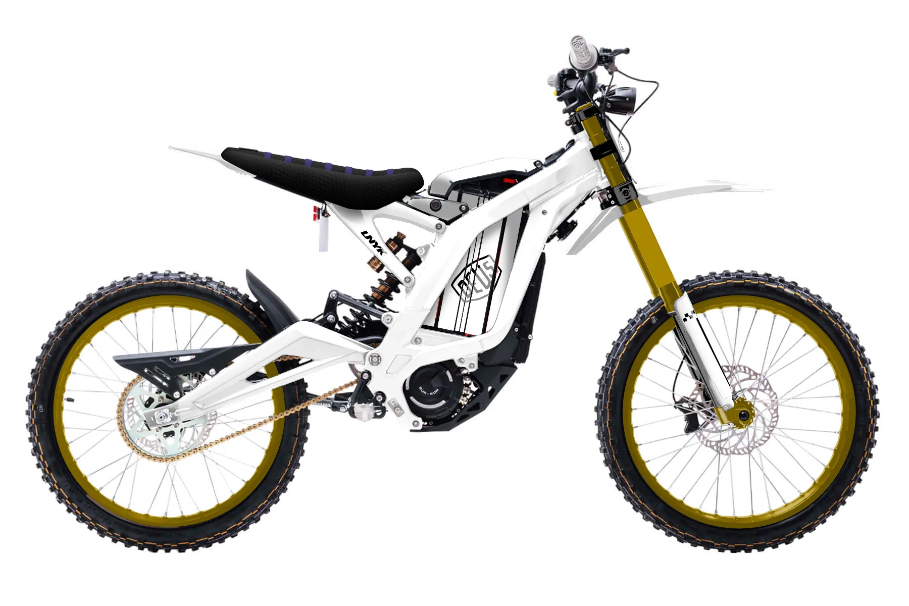 «Customs» — готовый комплект графики серии Staple для Sur-Ron Sur-Ron Light Bee Offroad 2015. В комплекте: графика на бак и боковые облицовки, крылья (переднее и заднее), передний щиток, номерные таблички, защита вилки. Материал: ПВХ-винил 80 мкр с холодной ламинацией 300 мкр, общая толщина 380 мкр; покрытие глянцевое или матовое на выбор. Устойчив к UV-излучению, воде, бензину и мойке высокого давления. Клей акриловый на сольвентной основе — постоянный, для гибких пластиков. На простых поверхностях монтируется без нагрева; для сложных изгибов рекомендуем фен. Этот пресет можно заказать как есть или взять за основу в конструкторе: поменять цвета, добавить стартовый номер и свой бренд. Производство — 3–5 рабочих дней, доставка по России СДЭКом или Почтой, по СНГ — курьерскими службами.