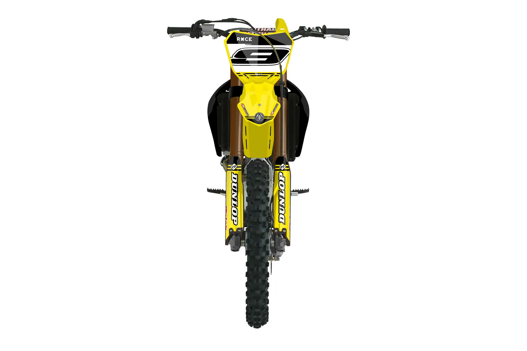 «Spotlight» — готовый комплект графики серии Untucked для Suzuki MX Graphic Kit Suzuki RMZ 250 2010. В комплекте: графика на бак и боковые облицовки, крылья (переднее и заднее), передний щиток, номерные таблички, защита вилки. Материал: ПВХ-винил 80 мкр с холодной ламинацией 300 мкр, общая толщина 380 мкр; покрытие глянцевое или матовое на выбор. Устойчив к UV-излучению, воде, бензину и мойке высокого давления. Клей акриловый на сольвентной основе — постоянный, для гибких пластиков. На простых поверхностях монтируется без нагрева; для сложных изгибов рекомендуем фен. Этот пресет можно заказать как есть или взять за основу в конструкторе: поменять цвета, добавить стартовый номер и свой бренд. Производство — 3–5 рабочих дней, доставка по России СДЭКом или Почтой, по СНГ — курьерскими службами.