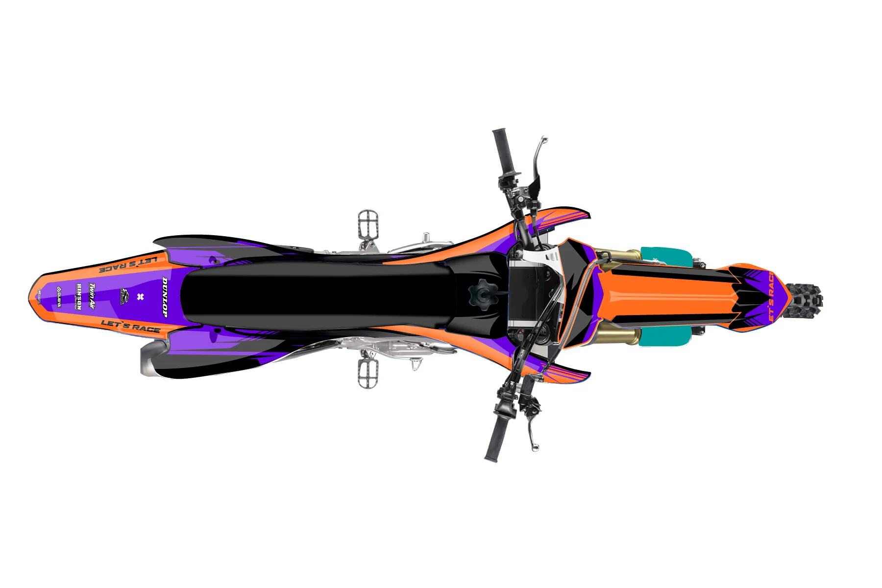 «ktm» — готовый комплект графики серии Factory для TM Racing MX Graphic Kit TM Racing – MX85 2013. В комплекте: графика на бак и боковые облицовки, крылья (переднее и заднее), передний щиток, номерные таблички, защита вилки. Материал: ПВХ-винил 80 мкр с холодной ламинацией 300 мкр, общая толщина 380 мкр; покрытие глянцевое или матовое на выбор. Устойчив к UV-излучению, воде, бензину и мойке высокого давления. Клей акриловый на сольвентной основе — постоянный, для гибких пластиков. На простых поверхностях монтируется без нагрева; для сложных изгибов рекомендуем фен. Этот пресет можно заказать как есть или взять за основу в конструкторе: поменять цвета, добавить стартовый номер и свой бренд. Производство — 3–5 рабочих дней, доставка по России СДЭКом или Почтой, по СНГ — курьерскими службами.