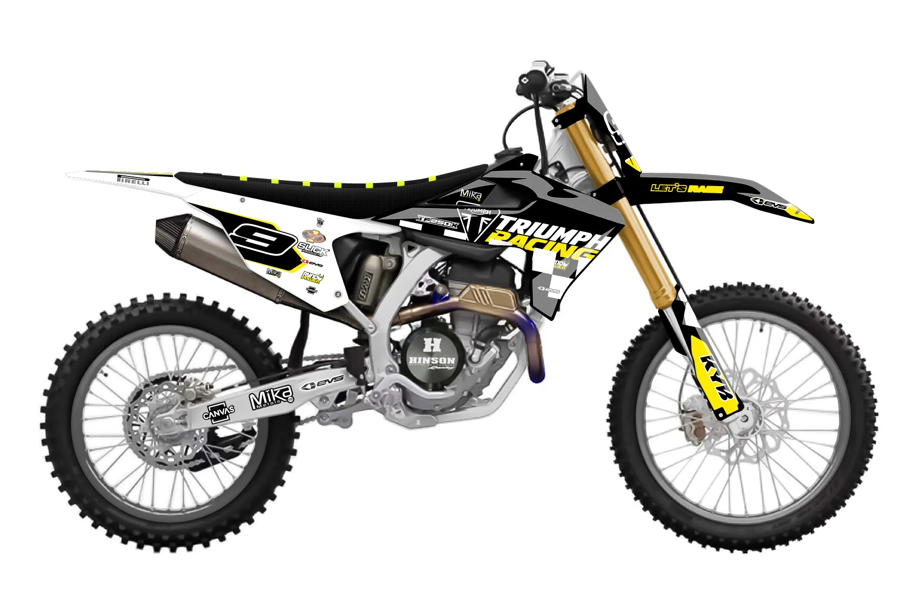 «Checkered Flag BLK/WHT/YLW» — готовый комплект графики серии Flow для Triumph MX Graphic Kit Triumph TF250X 2024. В комплекте: графика на бак и боковые облицовки, крылья (переднее и заднее), передний щиток, номерные таблички, защита вилки. Материал: ПВХ-винил 80 мкр с холодной ламинацией 300 мкр, общая толщина 380 мкр; покрытие глянцевое или матовое на выбор. Устойчив к UV-излучению, воде, бензину и мойке высокого давления. Клей акриловый на сольвентной основе — постоянный, для гибких пластиков. На простых поверхностях монтируется без нагрева; для сложных изгибов рекомендуем фен. Этот пресет можно заказать как есть или взять за основу в конструкторе: поменять цвета, добавить стартовый номер и свой бренд. Производство — 3–5 рабочих дней, доставка по России СДЭКом или Почтой, по СНГ — курьерскими службами.