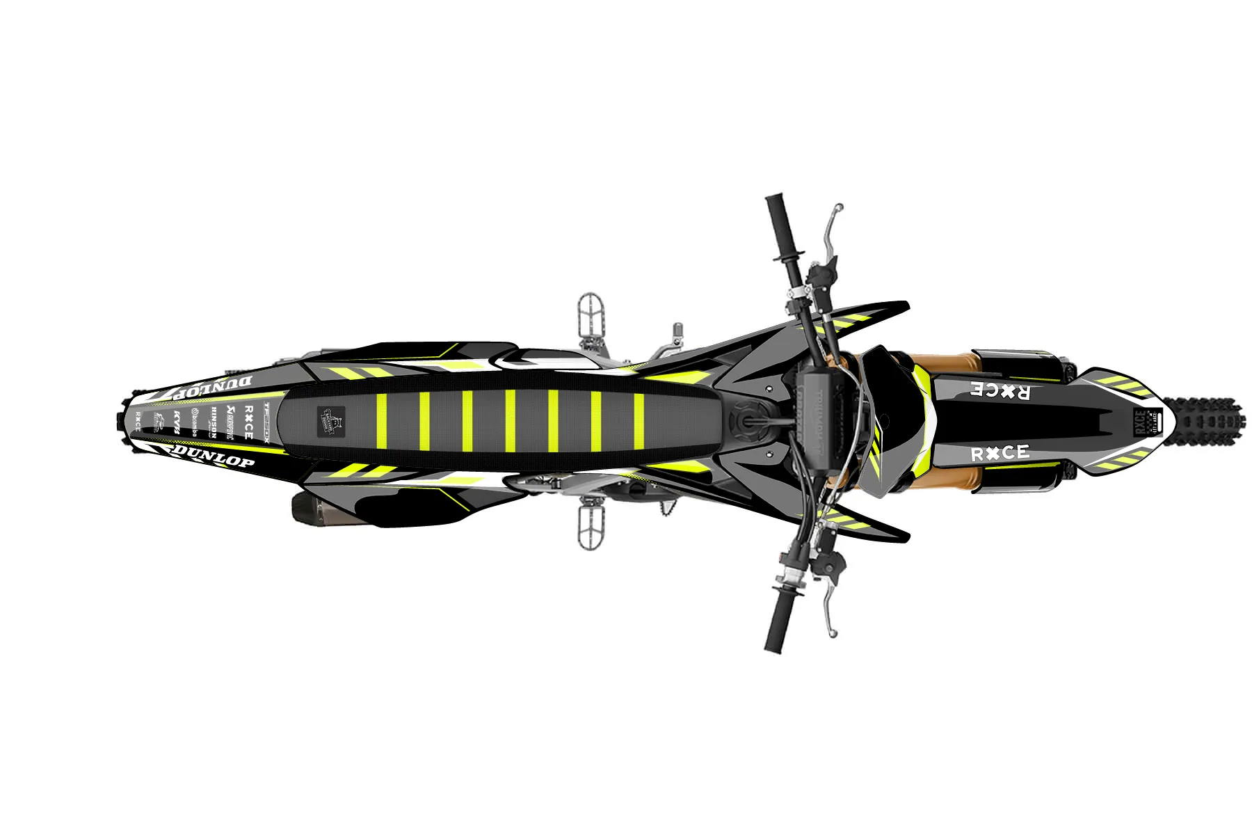 «tommy searle's bike» — готовый комплект графики серии Maverick для Triumph MX Graphic Kit Triumph TF250X 2024. В комплекте: графика на бак и боковые облицовки, крылья (переднее и заднее), передний щиток, номерные таблички, защита вилки. Материал: ПВХ-винил 80 мкр с холодной ламинацией 300 мкр, общая толщина 380 мкр; покрытие глянцевое или матовое на выбор. Устойчив к UV-излучению, воде, бензину и мойке высокого давления. Клей акриловый на сольвентной основе — постоянный, для гибких пластиков. На простых поверхностях монтируется без нагрева; для сложных изгибов рекомендуем фен. Этот пресет можно заказать как есть или взять за основу в конструкторе: поменять цвета, добавить стартовый номер и свой бренд. Производство — 3–5 рабочих дней, доставка по России СДЭКом или Почтой, по СНГ — курьерскими службами.
