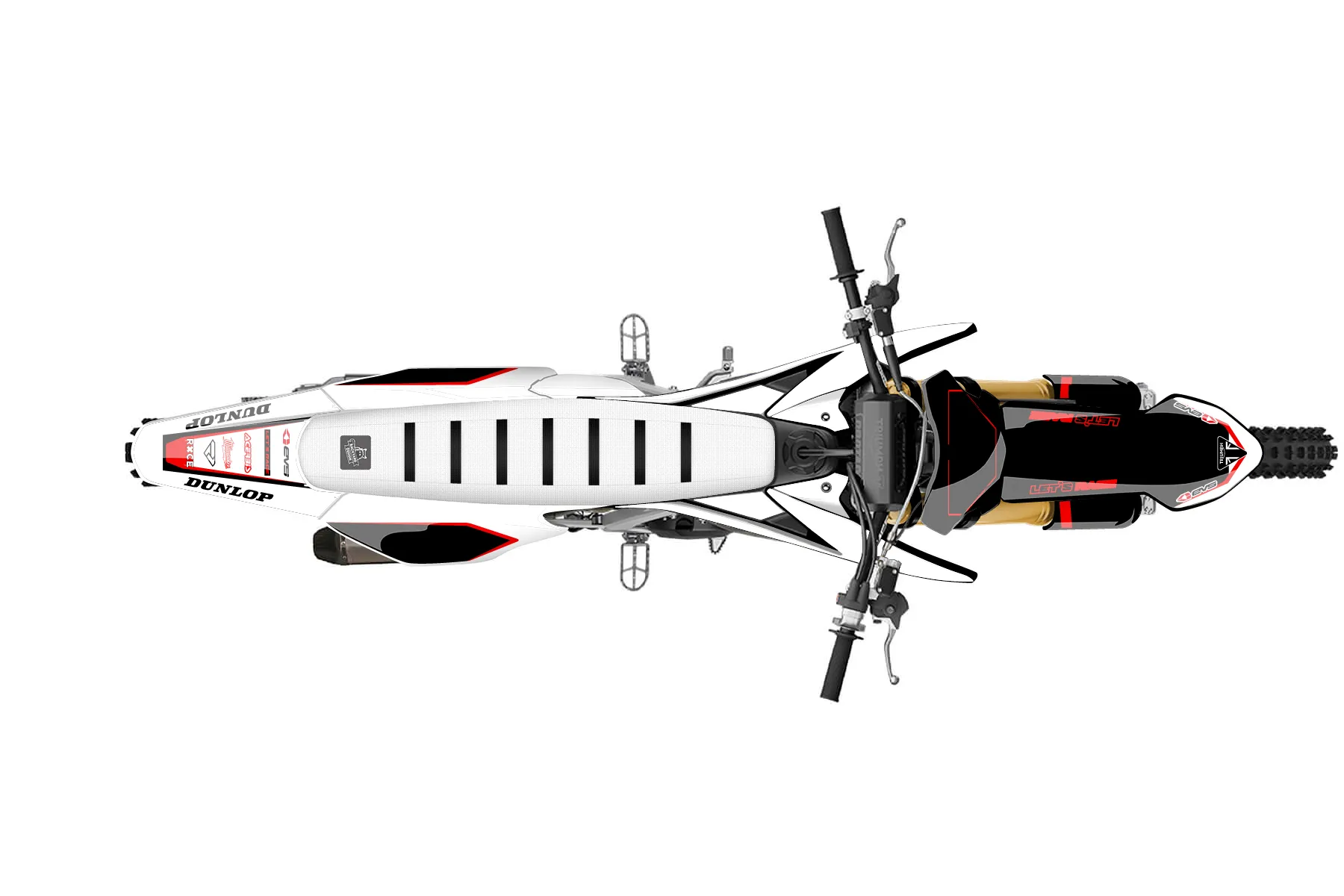 «B/W/R EVS BIKE» — готовый комплект графики серии Staple для Triumph MX Graphic Kit Triumph TF250X 2024. В комплекте: графика на бак и боковые облицовки, крылья (переднее и заднее), передний щиток, номерные таблички, защита вилки. Материал: ПВХ-винил 80 мкр с холодной ламинацией 300 мкр, общая толщина 380 мкр; покрытие глянцевое или матовое на выбор. Устойчив к UV-излучению, воде, бензину и мойке высокого давления. Клей акриловый на сольвентной основе — постоянный, для гибких пластиков. На простых поверхностях монтируется без нагрева; для сложных изгибов рекомендуем фен. Этот пресет можно заказать как есть или взять за основу в конструкторе: поменять цвета, добавить стартовый номер и свой бренд. Производство — 3–5 рабочих дней, доставка по России СДЭКом или Почтой, по СНГ — курьерскими службами.